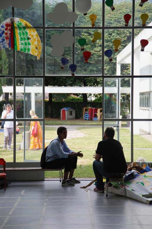 “Prima di iniziare a lavorare, i ragazzi si sono occupati in prima persona della pulizia di locali e delle vetrate per riportare il più possibile l’edificio al suo aspetto originale, che speriamo possa essere mantenuto anche quando l’asilo riaprirà a settembre. Poi a gruppi hanno avuto la possibilità di fare ricerche presso l’Archivio Terragni per conoscere in maniera diretta lo spazio che li ospita ma anche il pensiero da cui è nato, la sua storia e la sua fruizione. Il loro lavoro si concretizzerà in opere, performance e installazioni che verranno presentate al pubblico il 19 luglio. Non è una vera e propria mostra, non è questo il nostro obiettivo. E’ un’occasione per discutere di quello che si sta facendo e per aprire le porte al pubblico e al territorio”.