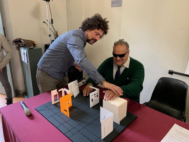 L’architetto e direttore artistico del Museo Tolomeo dell’Istituto dei ciechi Francesco Cavazza di Bologna, Fabio Fornasari ha creato le installazioni “Biblioteca Astratta” e “Velario” che avvicineranno il pubblico alle opere di Radice attraverso una esperienza di contatto per esplorare le linee e le spazialità dell’artista interiorizzandole.