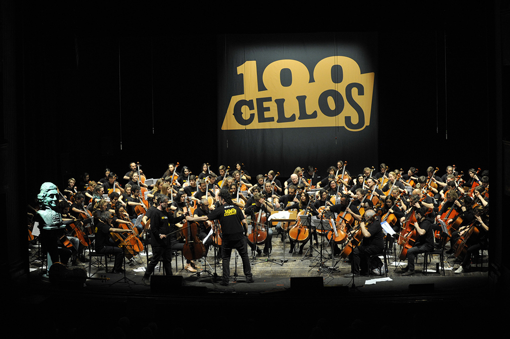 insieme, pubblico e orchestrali… Ma chi sono?? Sono i 100CELLOS, un formidabile ensemble fondato nel 2012 da Giovanni Sollima e Enrico Melozzi che raccoglie violoncellisti da tutto il
