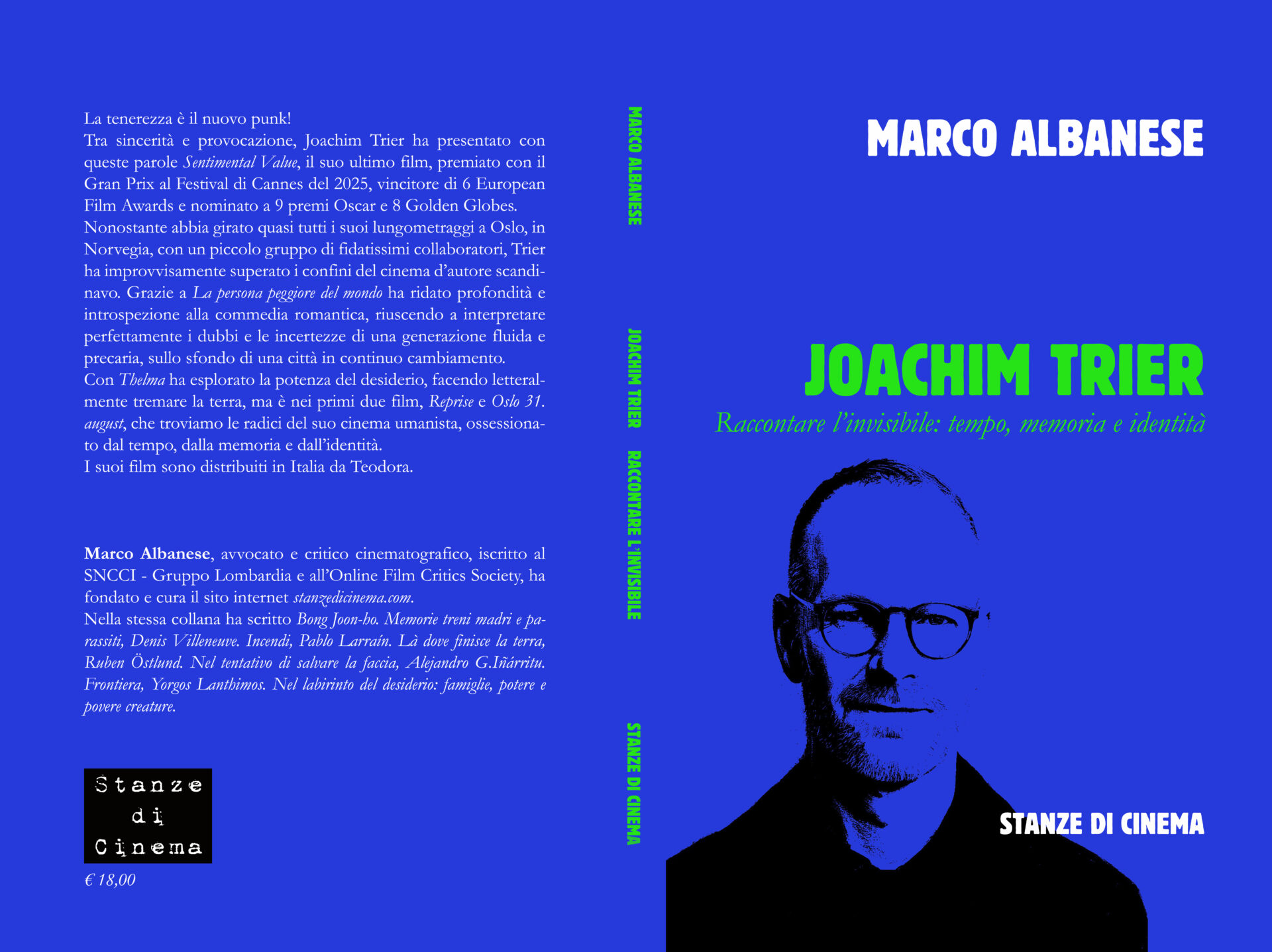 Nuovo appuntamento editoriale per Stanze di Cinema, dopo i libri dedicati Bong Joon-ho, Denis Villeneuve, Pablo Larraín, Ruben Östlund, Alejandro G. Iñárritu e Yorgos Lanthimos ecco Joachim Trier: Raccontare l’invisibile: tempo, memoria e identità è il settimo volume di una collana che intende raccontare l’universo narrativo e lo sguardo di alcuni dei registi contemporanei più discussi e apprezzati. E dunque siamo al settimo volume monografico dell’apprezzatissimo critico cinematografico anima e fondatore di Stanze di Cinema, Marco Albanese. Da ricordare che Sentimental Value, ultimo lavoro di Trier, ha ottenuto ben 9 candidature agli Oscar.