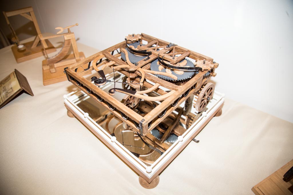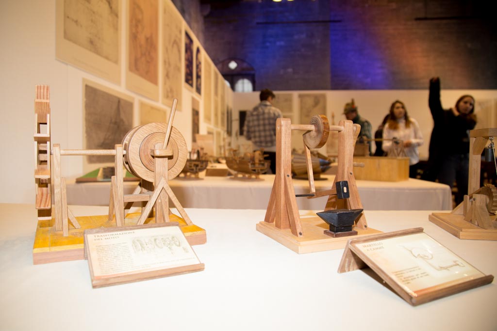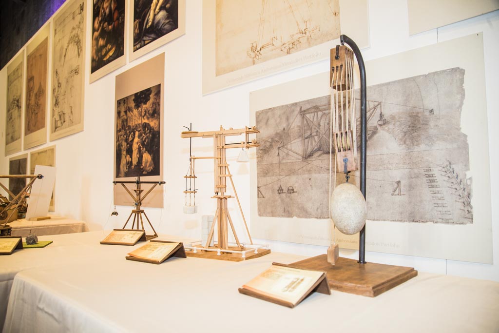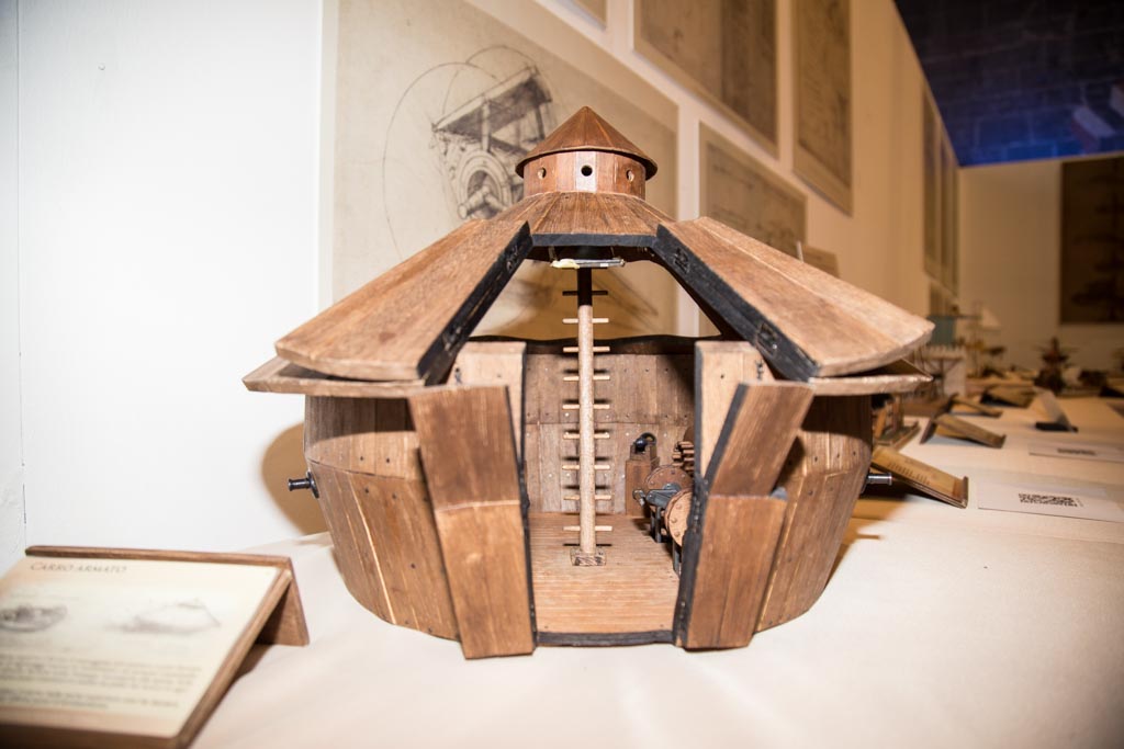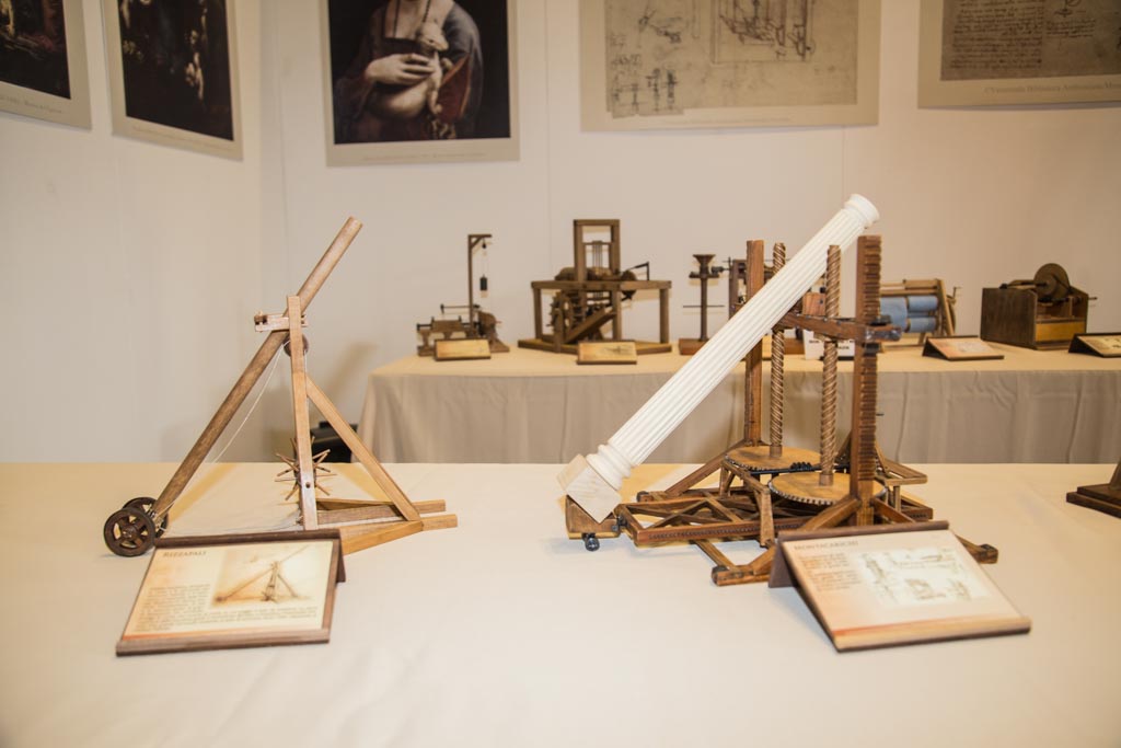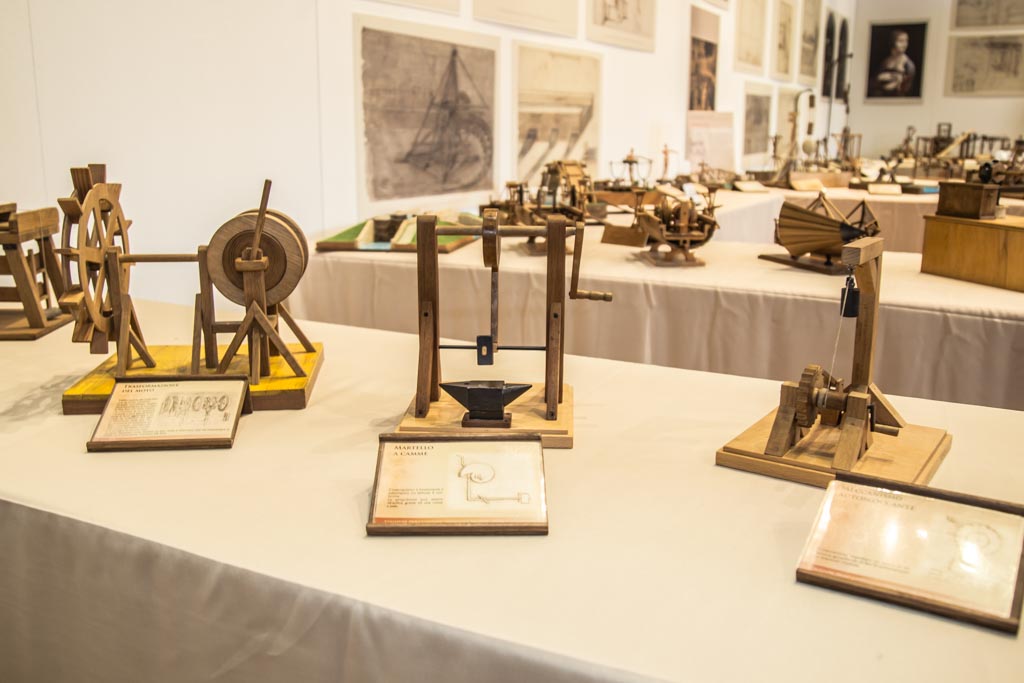 La mostra è una rara occasione per osservare l’abilità progettistica del genio di Vinci prendere forma – seppur in miniatura – attraverso cinque nuclei tematici con modelli di macchine idrauliche, volanti, acquatiche, belliche, per la costruzione di ponti e addirittura alcune macchine ludiche.