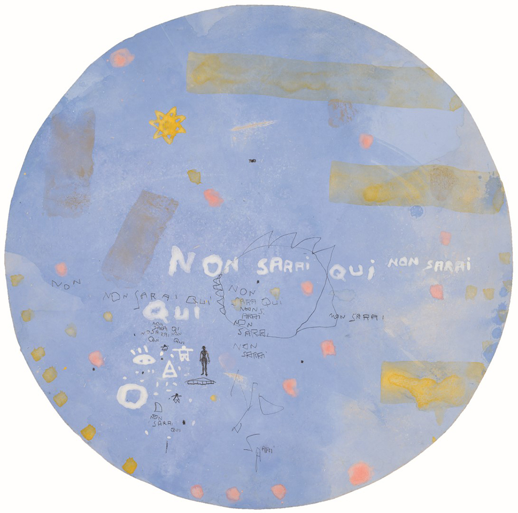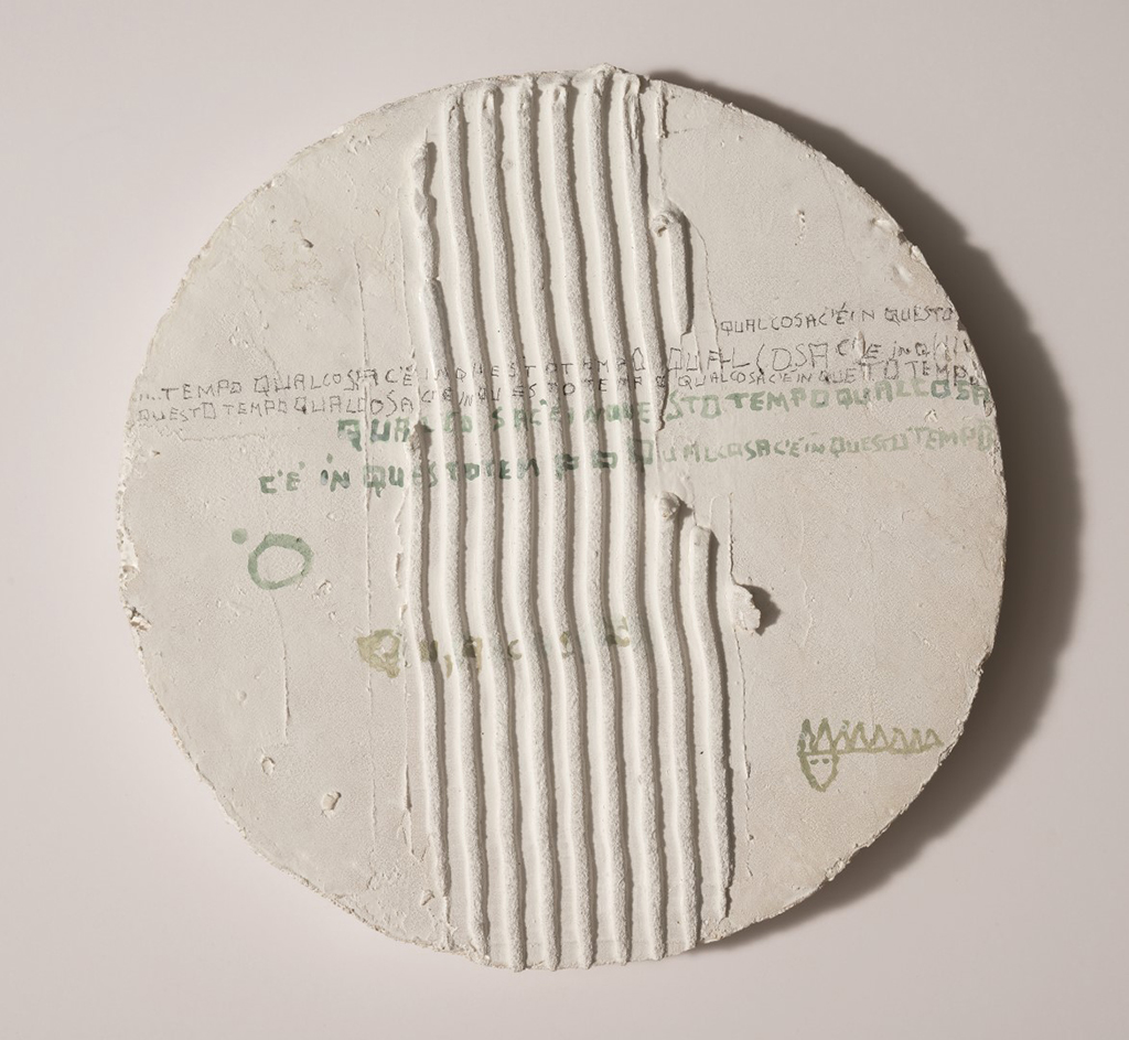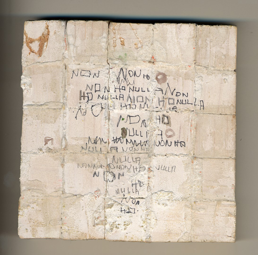 Il minimalismo astratto che abbraccia Vella negli ultimi anni lo porta a riflettere sul less is more; compaiono il segno grafico, la scrittura primigenia, elementare, primitiva, le parole dell’anima che si accavallano e si sovrappongono fino a risultare quasi illeggibili. Le scritture, le parole, le frasi sembrano provenire da conversazioni quotidiane (“dov’è la madre…”, “ero”, “parli poco oggi”) o da conversazioni con i media (“ciao Brad Pitt”, “25 Gesù + 2 Google”). L’atteggiamento artistico di Francesco Vella – espresso con le sue scritture e i suoi pensieri – si pone come un tentativo di resistenza allo scontro continuo con il caos quotidiano; in questo senso ognuno può leggere la visionarietà di un messaggio volto al futuro e inviato nell’etere. I quadri bianchi sono il risultato di una riduzione continua ai minimi termini espressivi; un desiderio di sparizione e nel medesimo tempo di rinascita.
