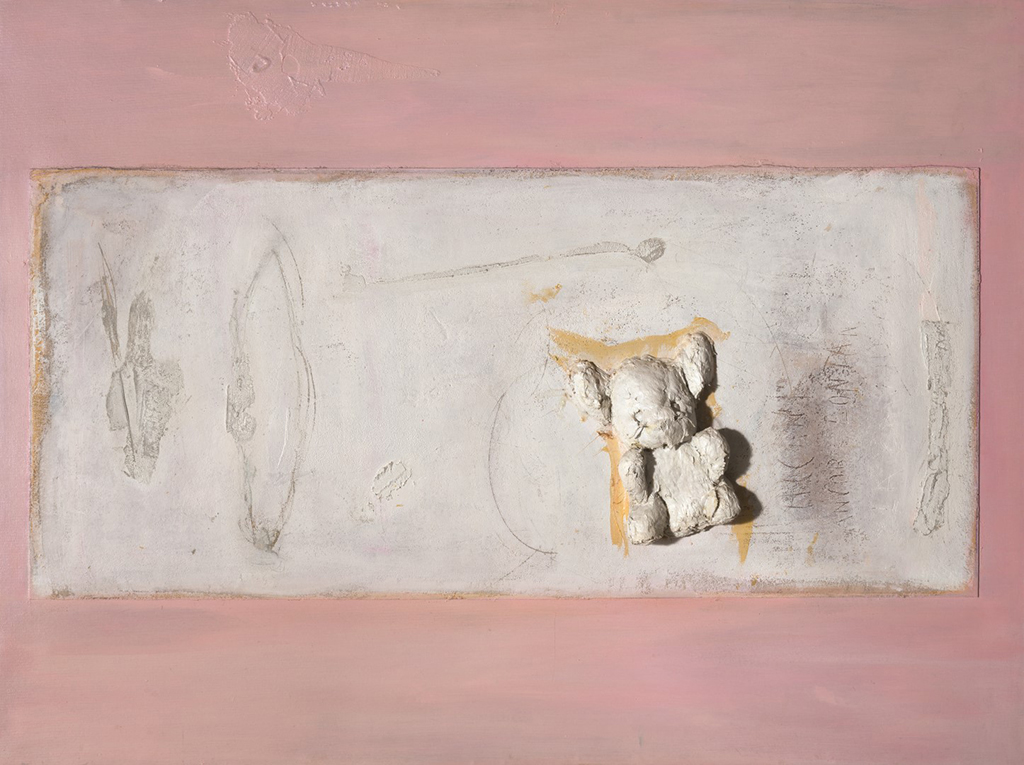 La sua ricerca prende la forma di opere fortemente materiche che incorporano immagini, anche fotografiche (dalla storia dell’arte alla cronaca ecc.), insieme a piccoli oggetti, plastiche, giocattoli, peluche, transitando tra la complessità del reale e stratificazioni dell’interiorità.