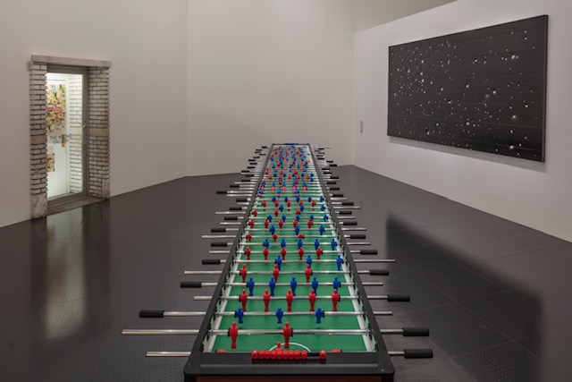 Se l’Aeroclub Como, attualmente in fase di ristrutturazione, aprirà le sue porte il prossimo 6 febbraio 2026, con una mostra dedicata a Giuliano Collina (Intra, 1938) e con una video installazione di Marzia Migliora (Alessandria, 1972), in coincidenza con l’apertura dei Giochi Olimpici, allo Stadio Sinigaglia, nelle giornate di apertura della mostra, per la prima volta a Como, Maurizio Cattelan (Padova, 1960) con Stadium, il grande calciobalilla realizzato dall’artista nel 1991.