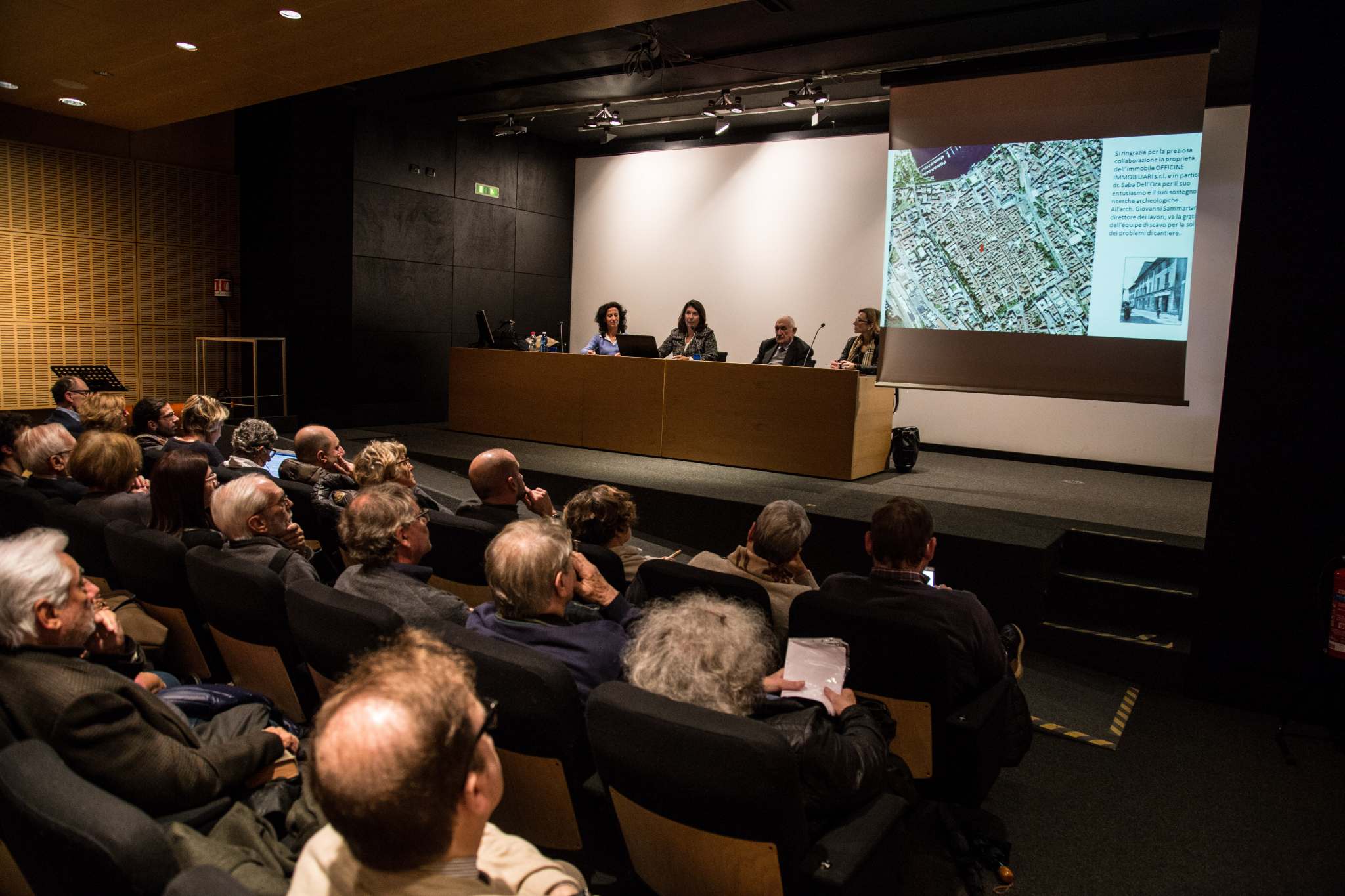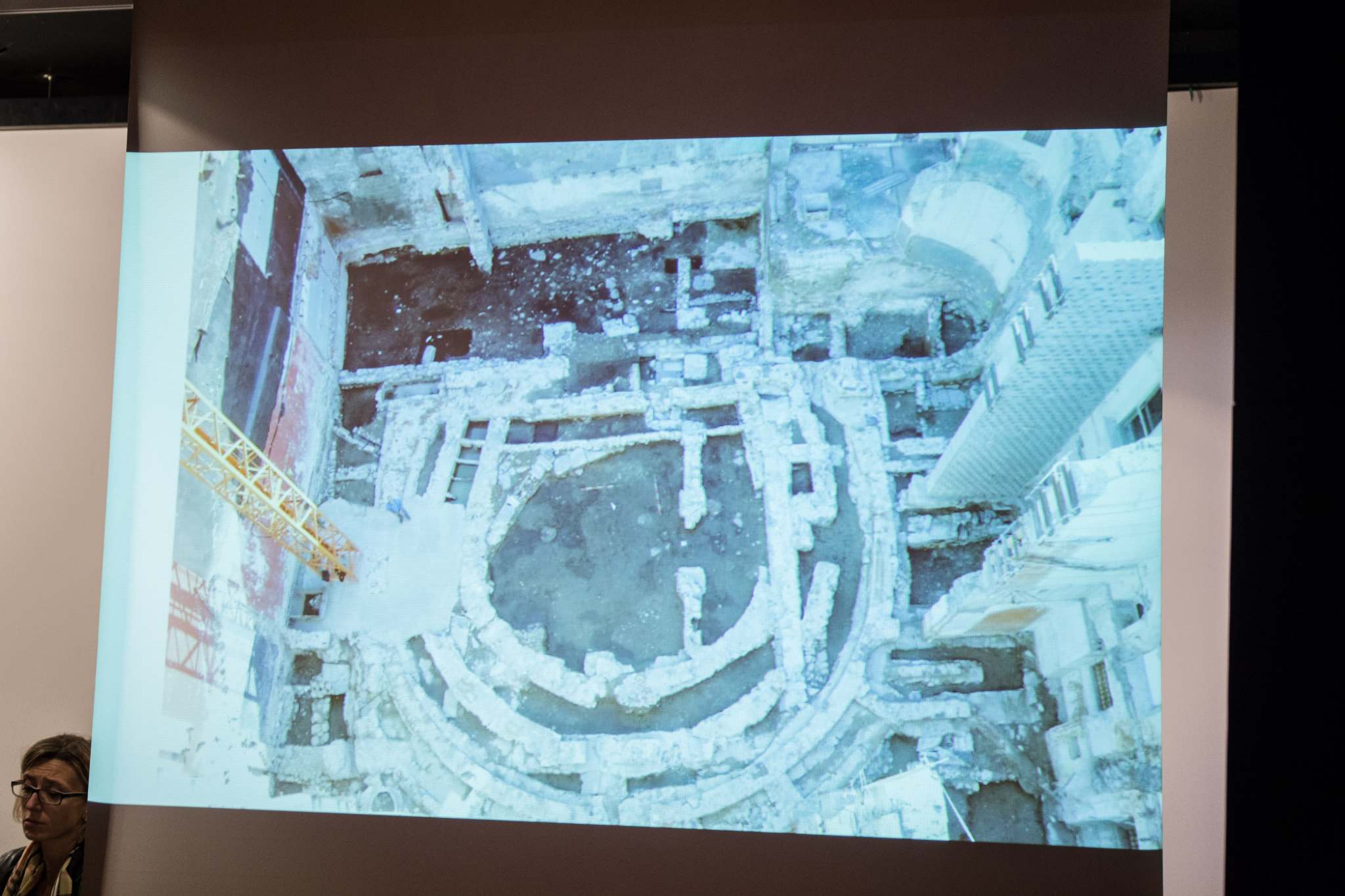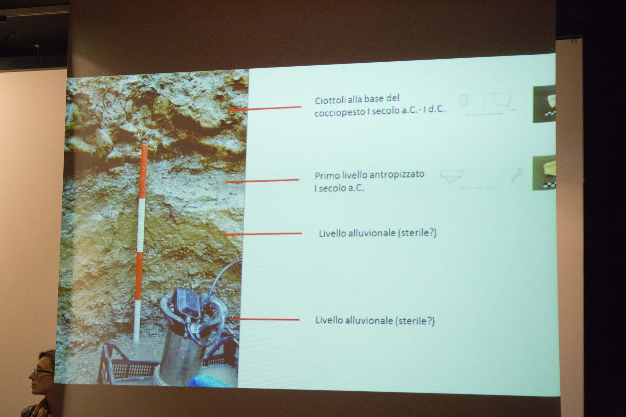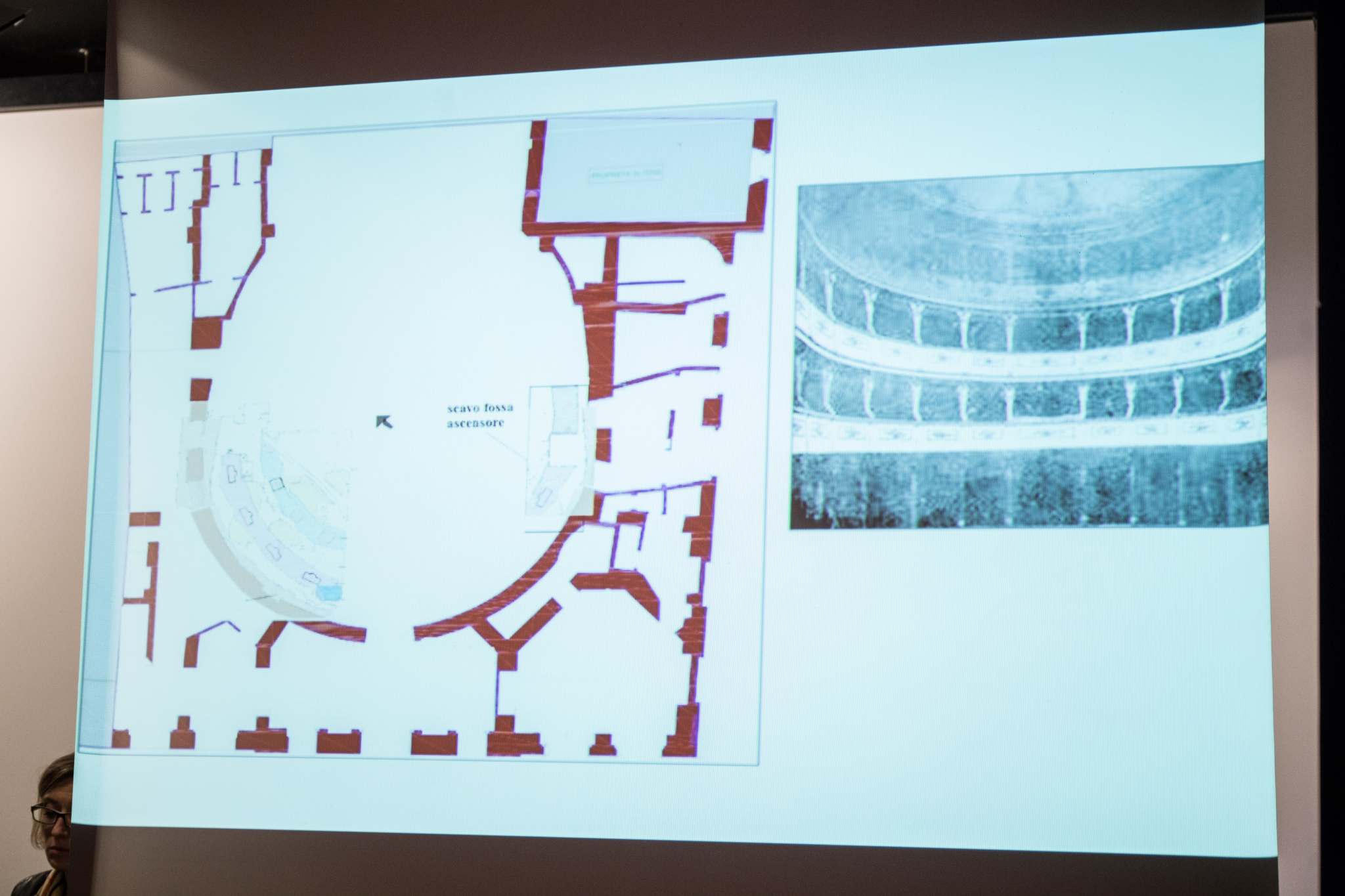 Archiviata la pratica sui tempi e i modi, è toccato a Barbara Grassi presentare quanto ritrovato nel corso dello scavo, un vero e proprio viaggio nel tempo che ha portato alla luce la storia di questo luogo, dal teatro al sottostante edificio residenziale, poi un convento e poi sempre più indietro nel tempo fino ad arrivare a scoprire i resti di probabili edifici pubblici di età imperiale e di un vano in cui, cercando altro, si è arrivati a scoprire il tesoro, “tutti elementi che racconteremo nell’allestimento, anche multimediale, che accompagnerà le monete”.