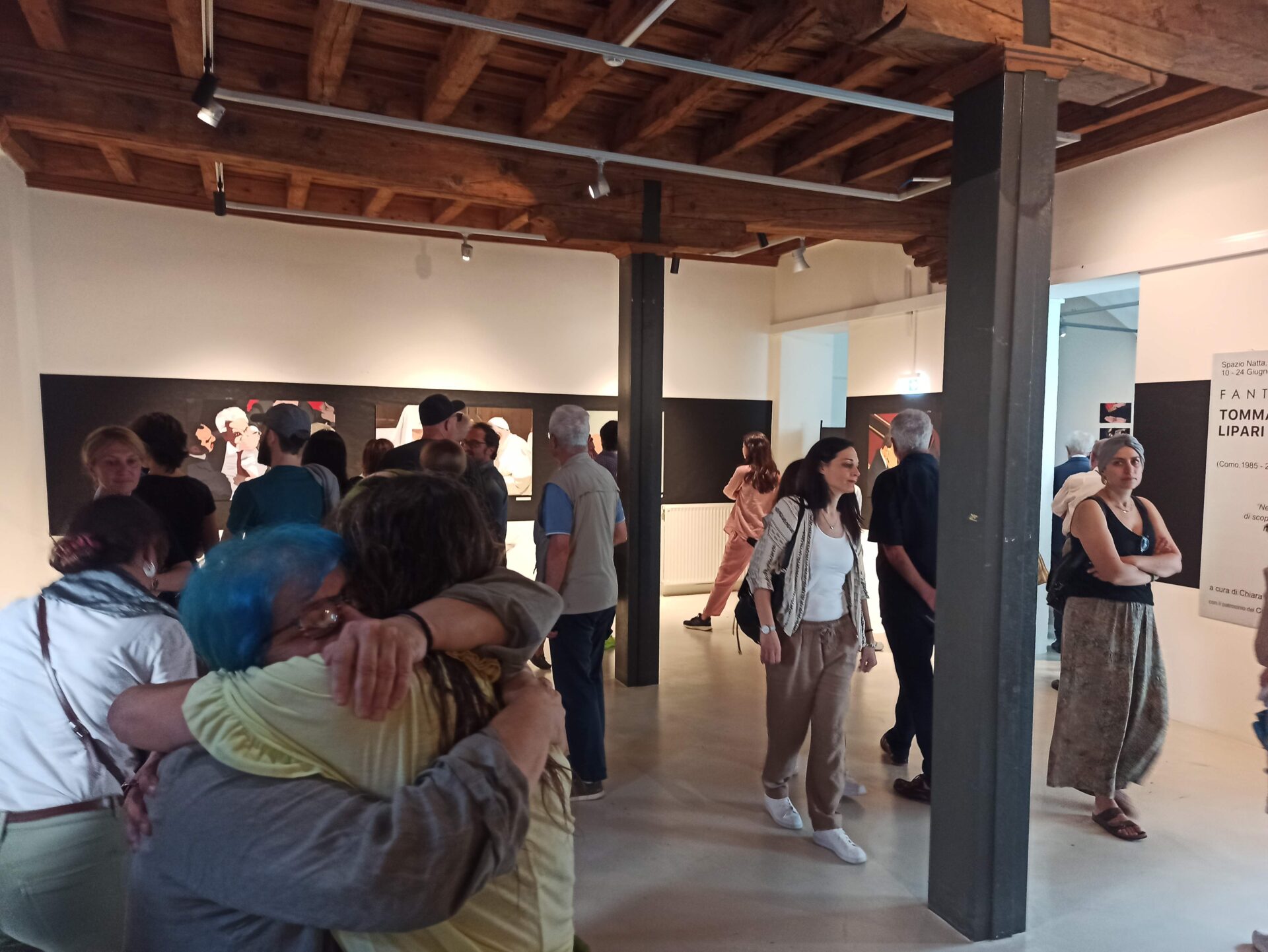 “Tommaso usa le immagini come un alfabeto attraverso tecniche e media diversi affondando sempre più in profondità eliminando tutto ciò che è esornativo per riportare alla luce l’unicità di ogni essere – ha ricordato una commossa Chiara Rostagno, curatrice della mostra – e nelle sue opere, è come se Tommaso ci guardasse negli occhi”. “A Tommaso piaceva lavorare con Paint, un programma all’apparenza semplice che però gli permetteva di creare opere punto per punto, pixel per pixel – ha concluso Paolo Lipari al momento di aprire ufficialmente le porte della mostra – grazie a questa alchimia di tanti singoli elementi lui riusciva a creare qualcosa di grande, a rendere credibile il fantastico e incredibile la realtà più prossima”. E a guardare la folla silenziosa e commossa che ha attraversato il cortile e le sale dello Spazio Natta mescolando abbracci, lacrime, sorrisi e ricordi tra le opere potentissime e piene di vita appese alle pareti, c’è da pensare che davvero oggi Tommaso Lipari abbia realizzato il suo capolavoro più grande.