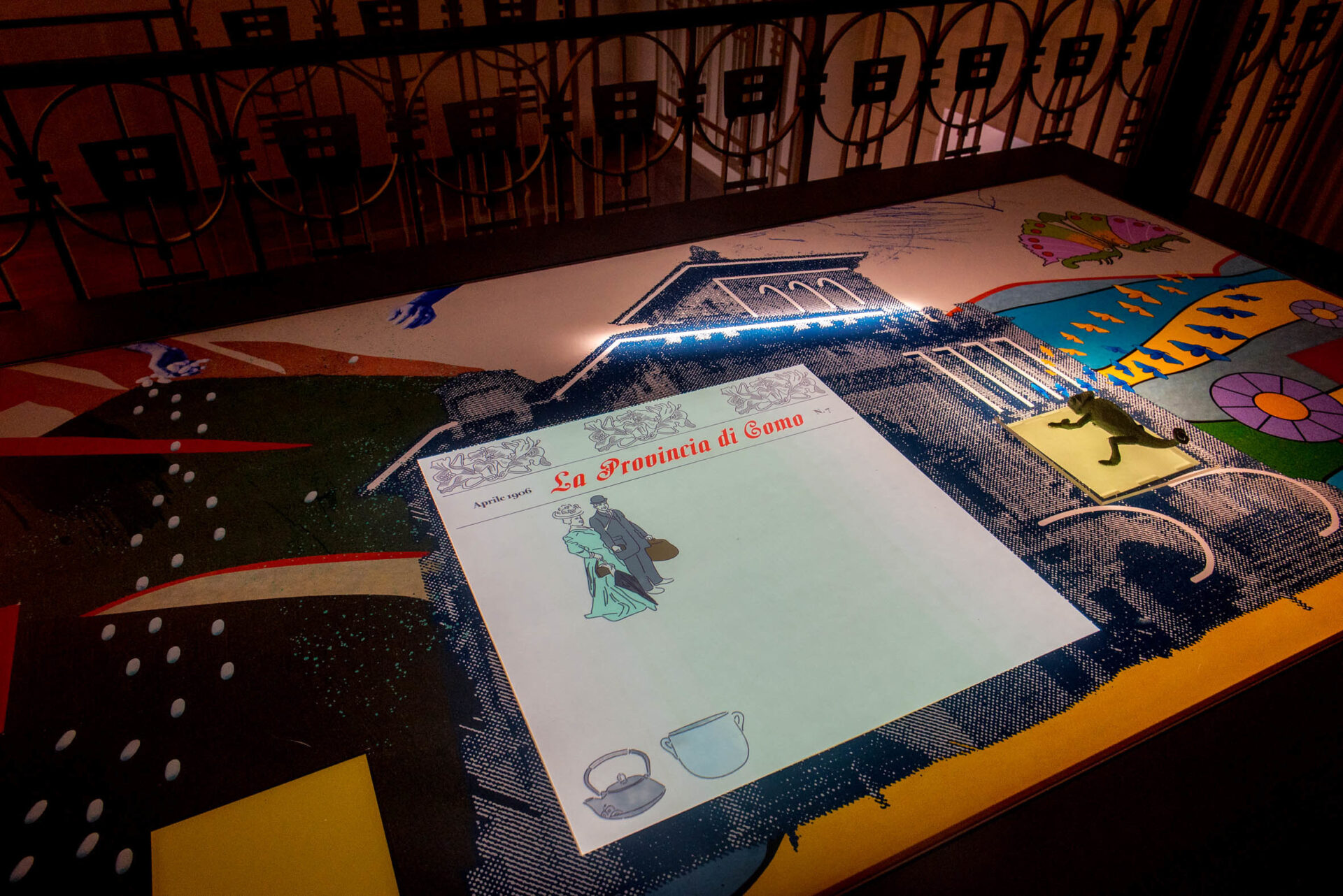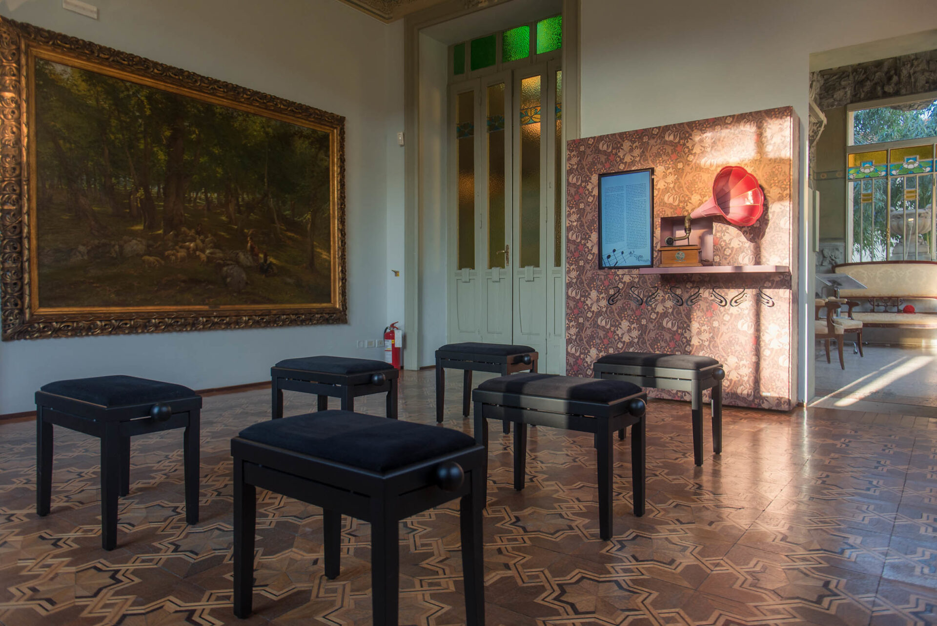 Al piano rialzato, dove ci sono la sala da pranzo e della musica, viene raccontato il contesto storico, artistico e culturale del periodo di edificazione della villa (ovvero i primi del ‘900 e la Belle Epoque), di cui la villa stessa ben simboleggia le trasformazioni sociali, economiche, culturali ed estetiche, e di cui rappresenta l’intrinseco spirito di modernità.
