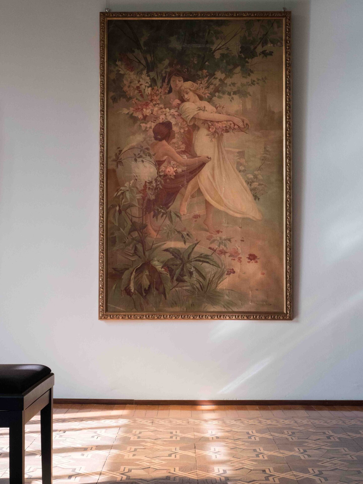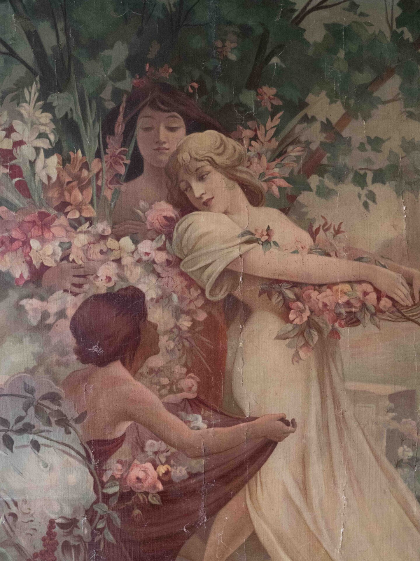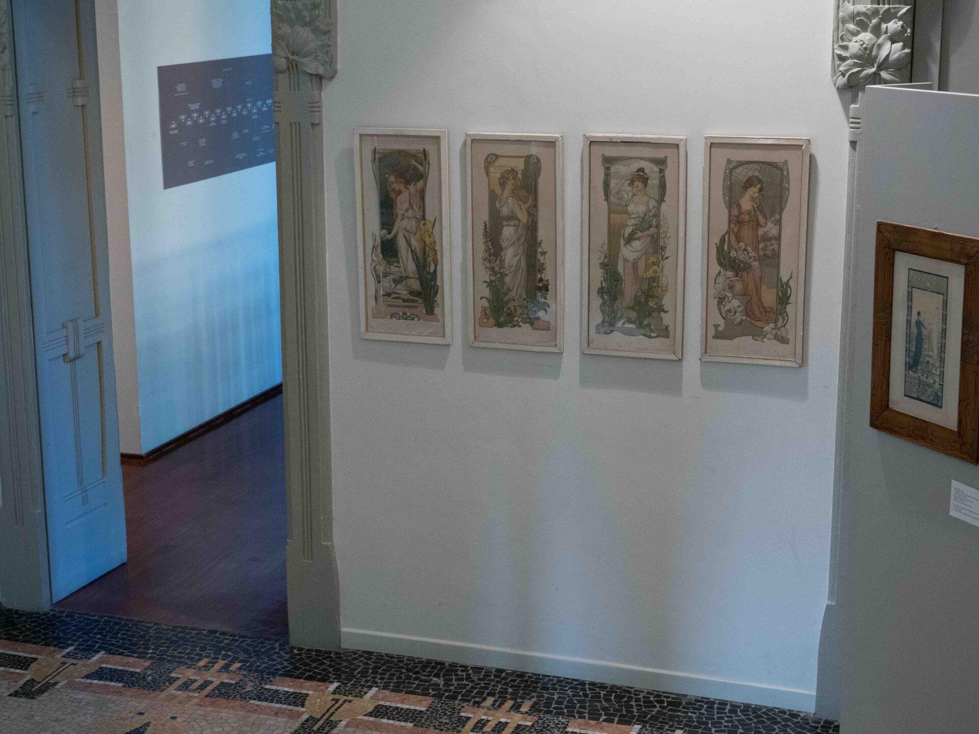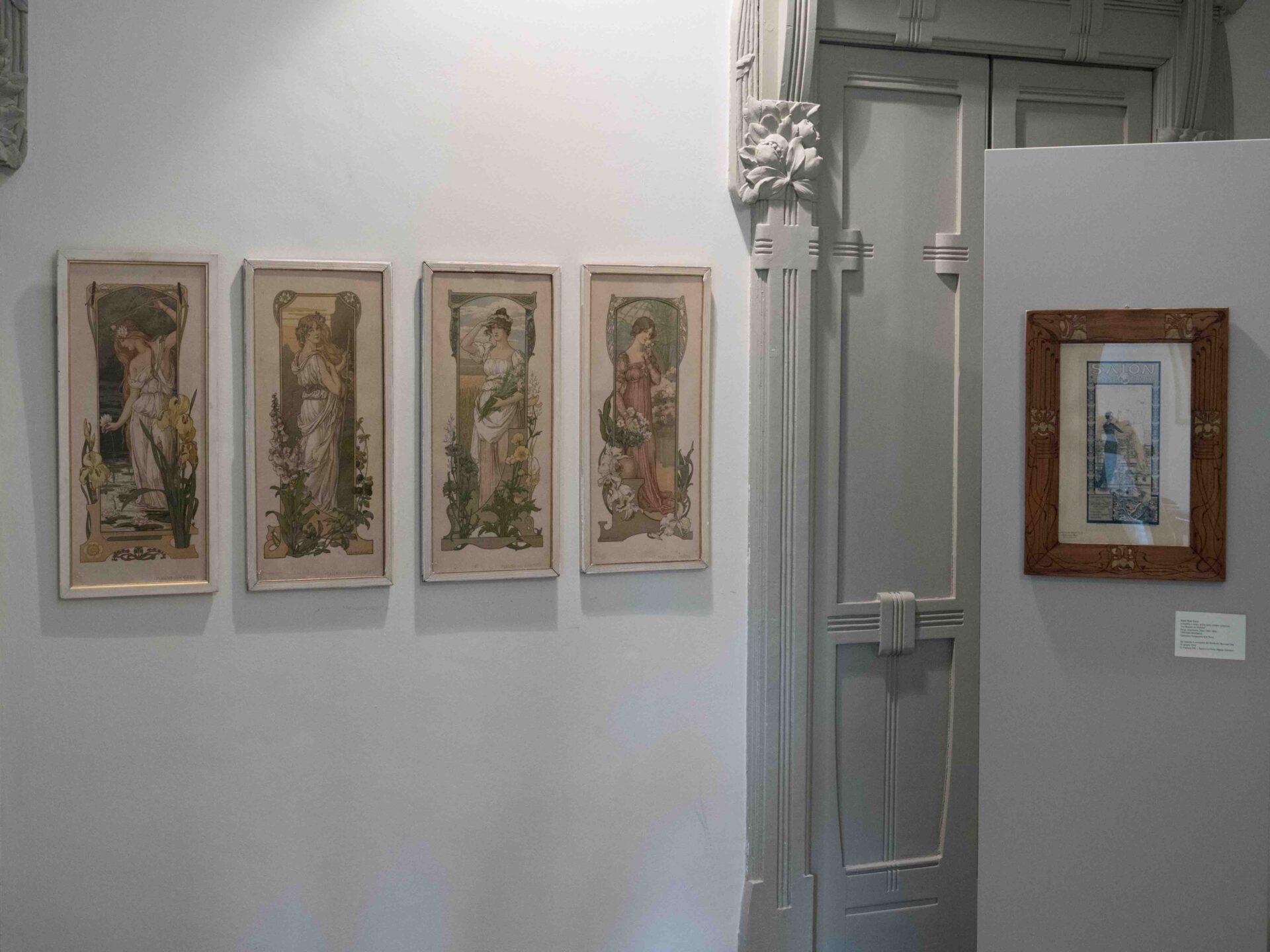Tra le opere esposte si segnala in particolare la grande e rara litografia su tela di Alphonse Mucha (1860-1939) intitolata “Les fleurs”, realizzata per Home Decor nel 1894 e proveniente dalla collezione della Fondazione Arte Nova. Un’opera realizzata da Mucha all’inizio della sua carriera di illustratore, con uno stile ancora distante dai poster che lo hanno reso celebre. Dialogano con quest’opera tre litografie su carta, di una serie di quattro, del 1898, sempre di Mucha, che rappresentano donne con fiori: il garofano, l’iris e la rosa.