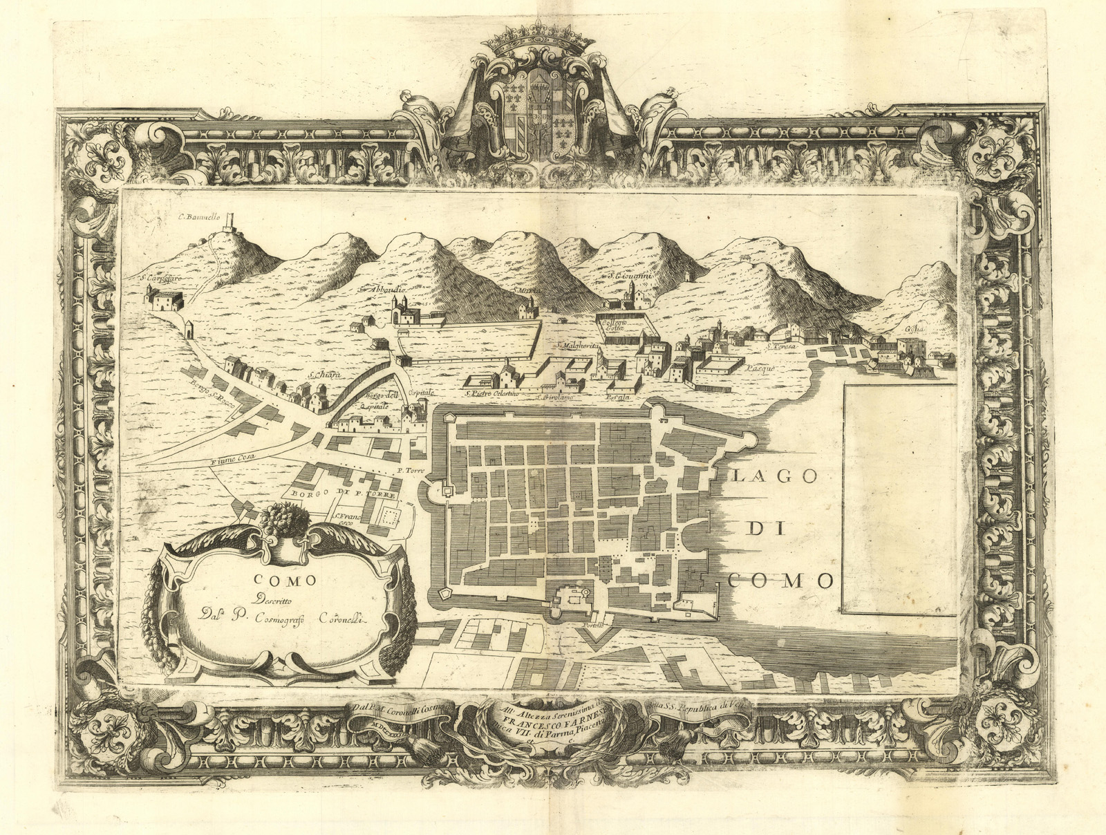 Como Vincenzo Maria Coronelli (1650-1718) dis. incisione in rame 1697 396×520 mm (compresa cornice)