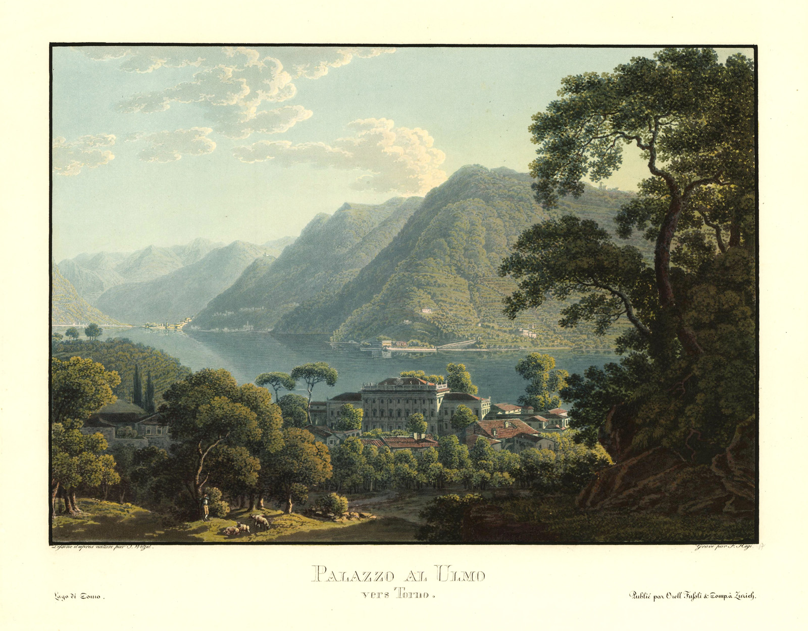 Palazzo al Ulmo verso Torno Johann Jakob Wetzel (1781-1834) dis. Franz Hegi (1774-1850) inc. Orell, Fussli & C. edit. Acquatinta 1822 194×275 mm