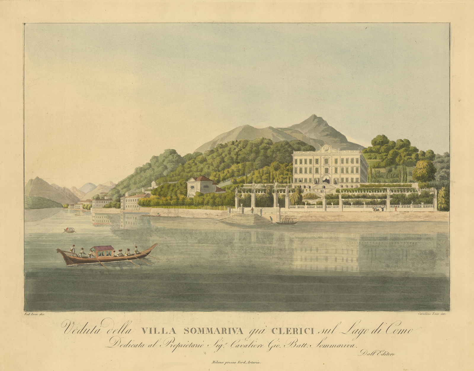 Veduta della Villa Sommariva già Clerici sul Lago di Como Federico Lose (1776-1833) dis. Carolina Lose (1784-1837) inc. Ferdinando Artaria (1781-1843) edit. Incisione in rame al tratto 1820 ca 300×441 mm