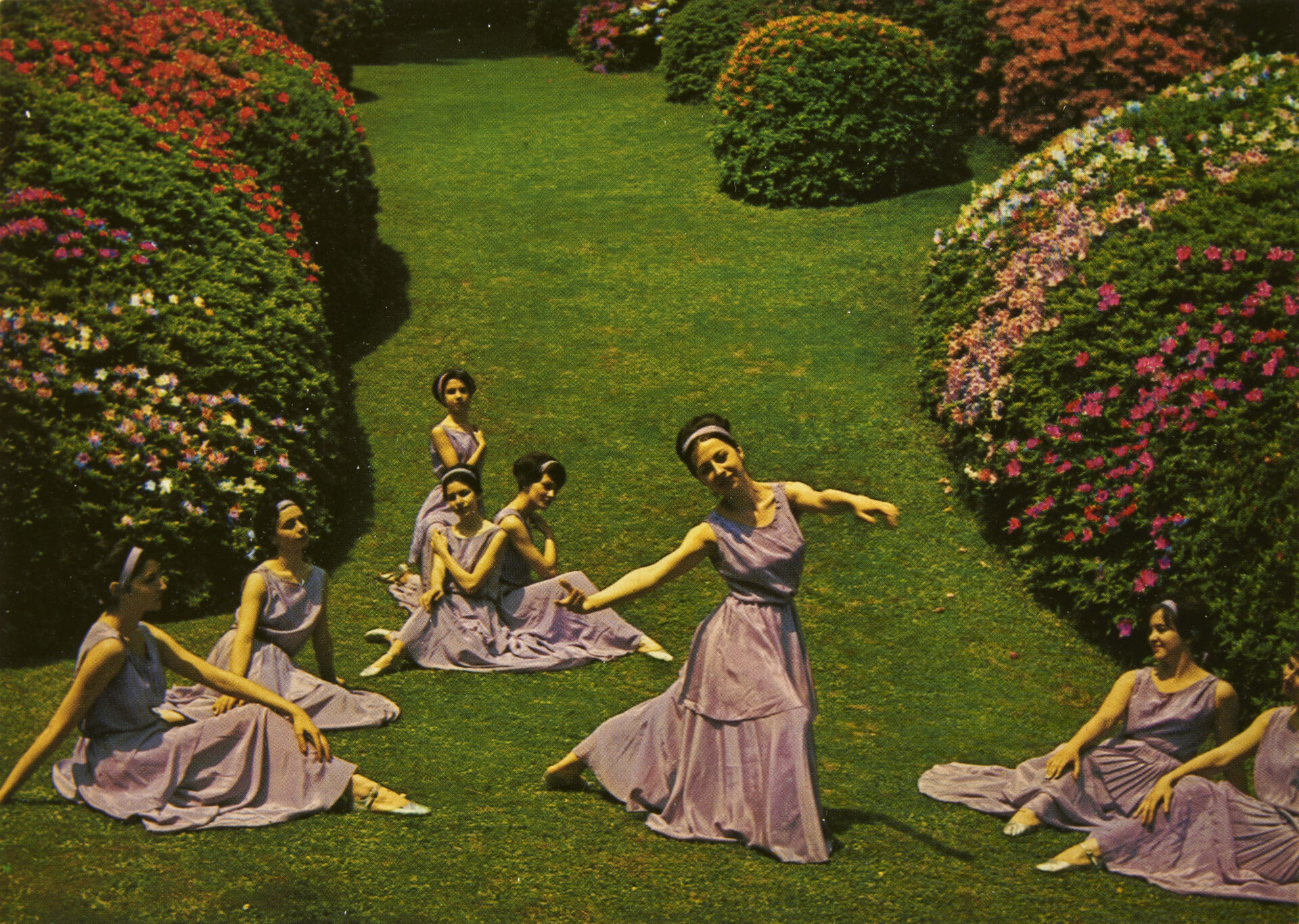 A partire dall’istituzione dell’Ente Villa Carlotta, nel 1927, inizia un ricco programma di eventi che interessano in particolare il giardino. Feste, intrattenimenti musicali e balletti vengono ambientati sulle terrazze e nei viali, dove le fioriture delle camelie, delle azalee e dei rododendri diventano spettacolari quinte sceniche. Dagli anni Trenta del secolo scorso serate danzanti, abbinate a giochi di luci, vengono ospitate regolarmente in villa, spesso in concomitanza delle fioriture stagionali. Tra le manifestazioni più amate negli anni a venire ci sono anche i balletti delle allieve del Lyceum di Milano, dirette dall’insegnante Tina Belletti, riprese nel video “Nell’incanto di Villa Carlotta” girato nel luglio del 1955 nella suggestiva cornice del parco.