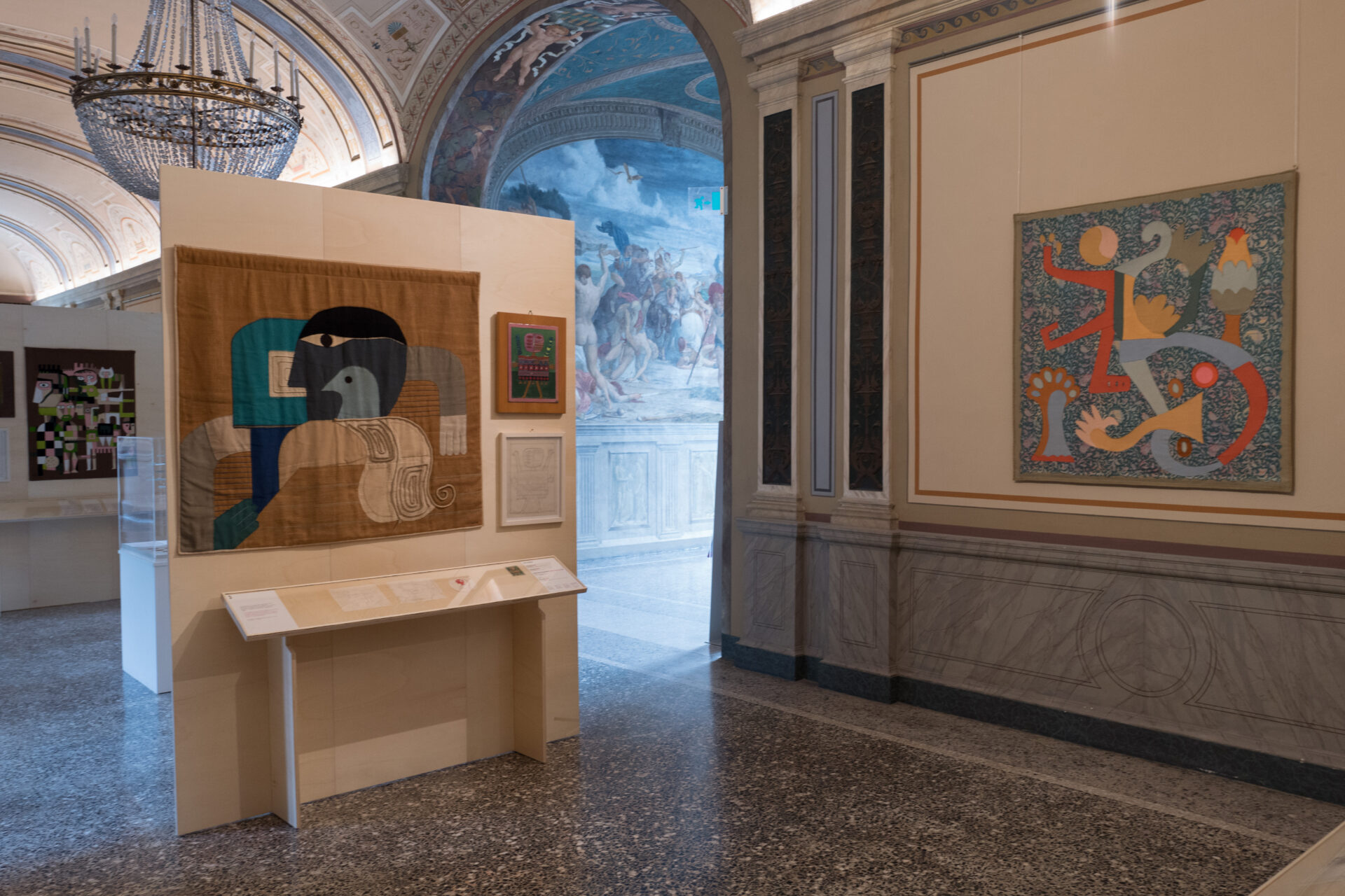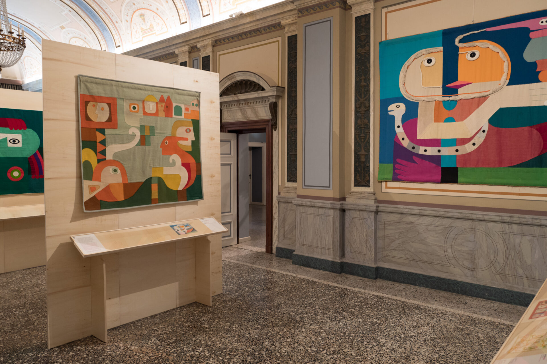 Oltre cinquanta opere in totale a cui se ne aggiungono altre sessanta fra disegni preparatori e schizzi. Ciascuno dei nove spazi, scanditi nella Galleria di Villa Carlotta, accoglie opere tra loro affini per forme, colori, espressività prevalenti, suggerendo una sequenza, un tono in cui il visitatore può ritrovare collegamenti, ricerca di senso, livello di concentrazione ed emozione. L’idea si esprime a diverse scale grafiche: alcuni piccoli disegni, come un seme, contengono lo sviluppo del grande arazzo esposto.