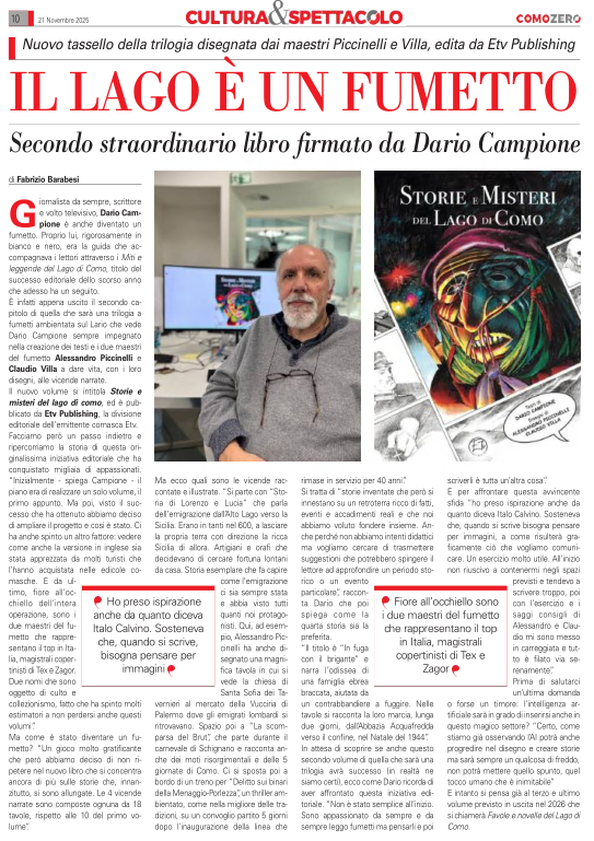 È infatti appena uscito il secondo capitolo di quella che sarà una trilogia a fumetti ambientata sul Lario che vede Dario Campione sempre impegnato nella creazione dei testi e i due maestri del fumetto Alessandro Piccinelli e Claudio Villa a dare vita, con i loro disegni, alle vicende narrate.