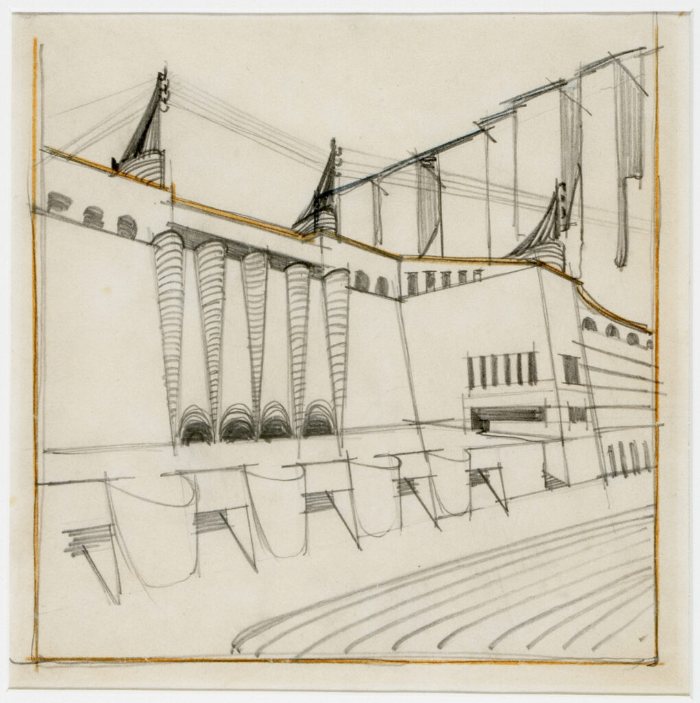 Rosanna Ruscio, docente di Storia dell’Arte contemporanea all’Accademia di Brera, nel saggio che accompagna il catalogo pubblicato da Biblion editore, descrive la qualità artistica delle opere: “I fogli sono libere prove iconiche del suo programma utopico, la dimostrazione di una capacità di vedere anche nel rapido schizzo quella che doveva essere la fusione degli edifici con l’ambiente. La compattezza leggera dei volumi, data anche dalle colorazioni degli inchiostri […], l’estrema sottigliezza del segno […], restituiscono il senso delle strutture architettoniche pensate per una città in continua evoluzione”.