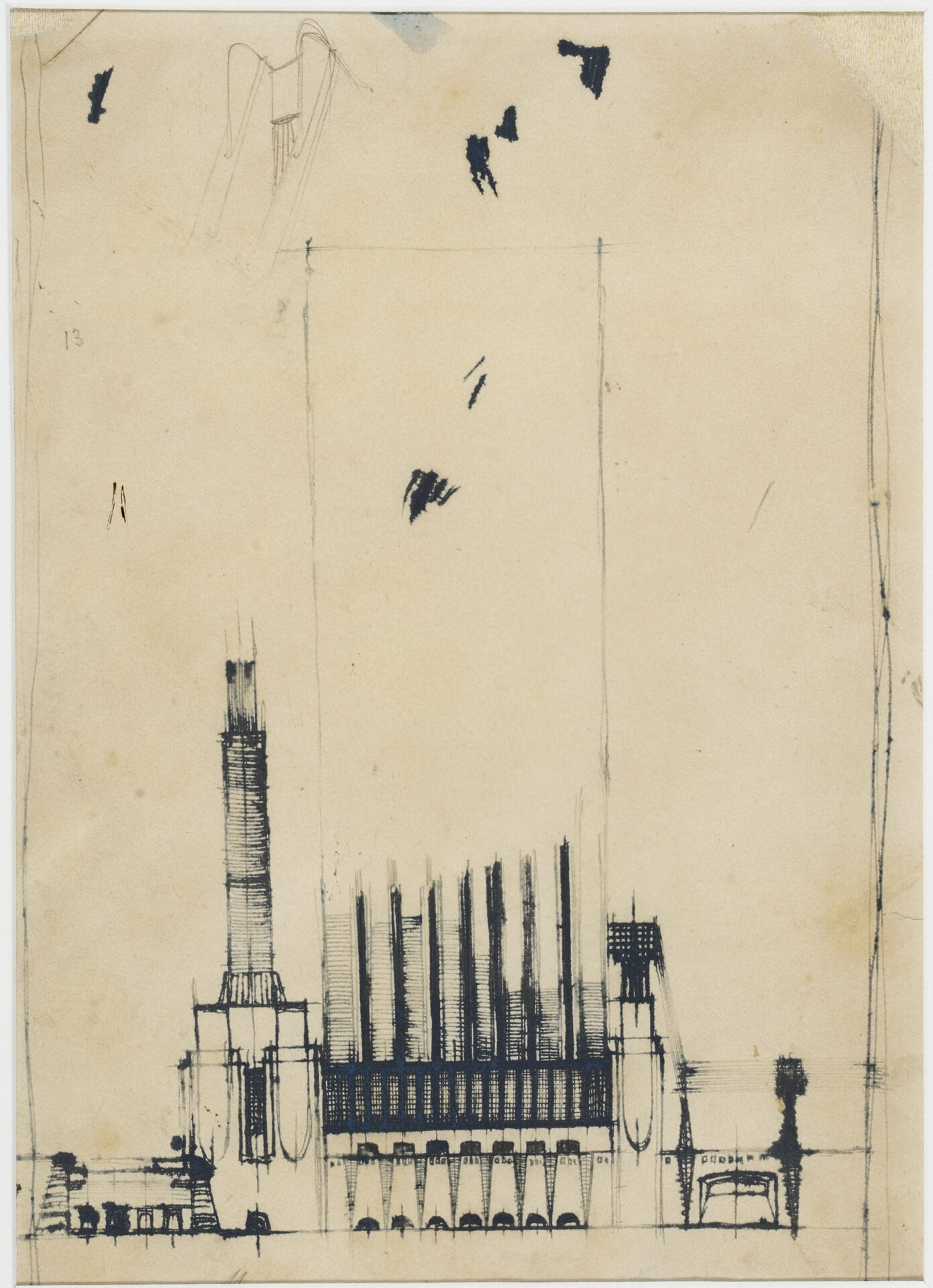 Le due esposizioni presenteranno in totale 24 disegni originali provenienti dalle collezioni della Pinacoteca (10 a Como e 14 a Milano). Tali opere, risalenti al periodo cruciale 1913-1914, sono raramente esposte al pubblico. Si tratta di progetti e studi che spaziano da edifici industriali a centrali elettriche, stazioni e infrastrutture, posti in dialogo con i contesti urbani di Como e Milano, le due città che hanno maggiormente plasmato l’immaginario visionario dell’architetto.