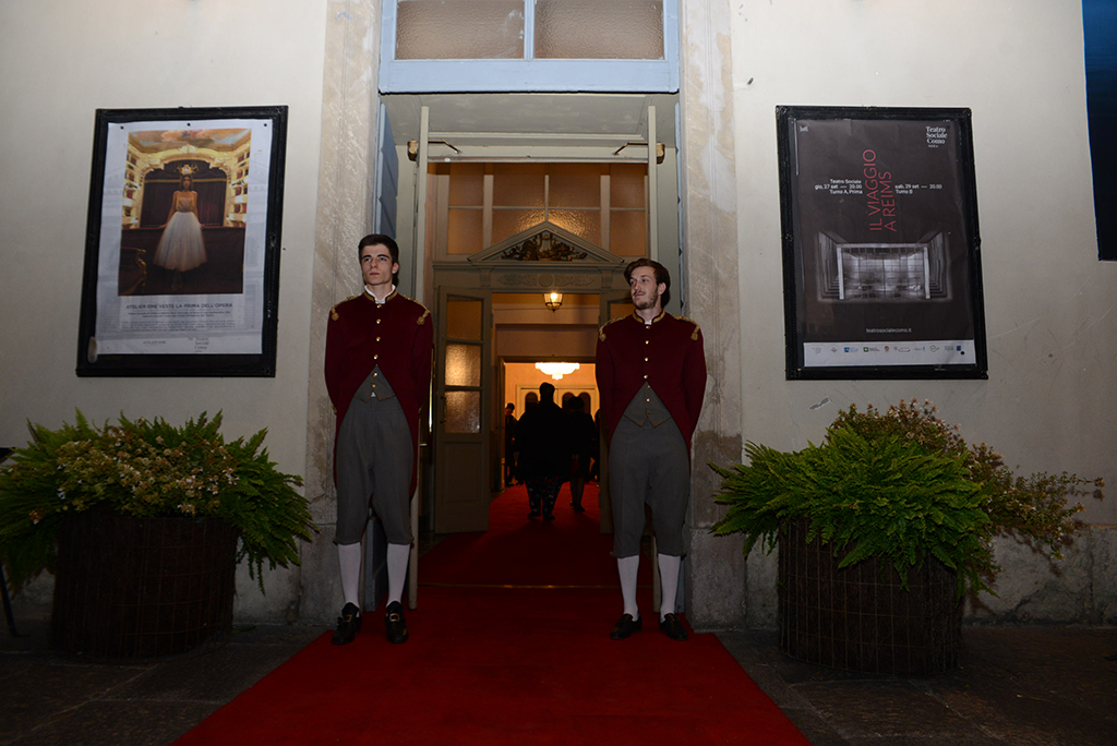 Oggi per ComoZero le immagini di Francesco Corbetta. Così ecco il racconto, rigorosamente visivo, della prima (dopo il debutto, giovedì, per i giovani) de “Il viaggio a Reims, o sia l’albergo del giglio d’oro“.