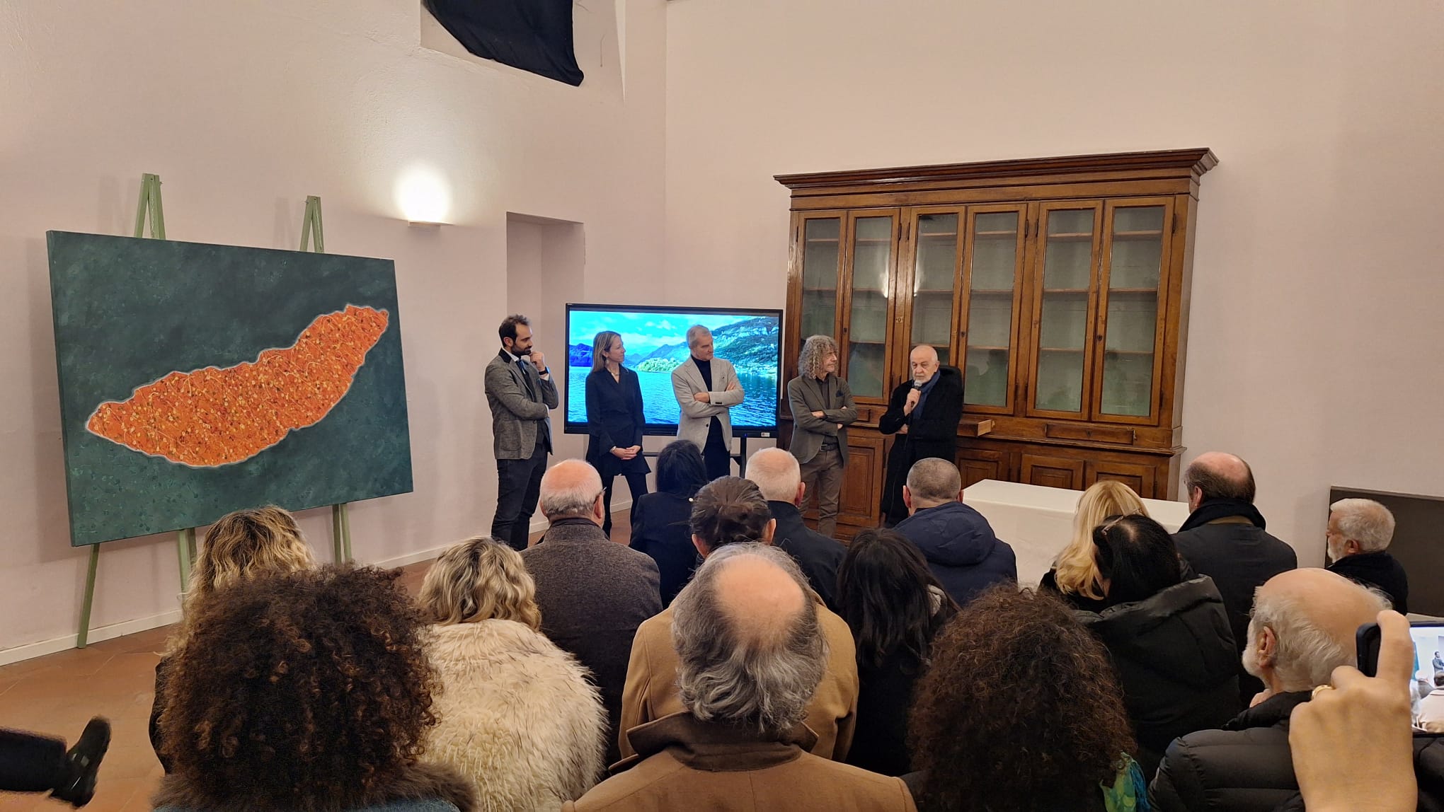 In uno spazio adiacente è allestito anche un percorso espositivo che ospita varie opere ispirate proprio all’Isola Comacina, realizzate dagli artisti locali Emilio Alberti, Giovanni Colombo e Doriam Battaglia.