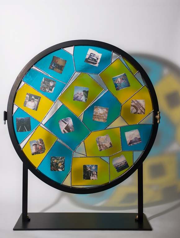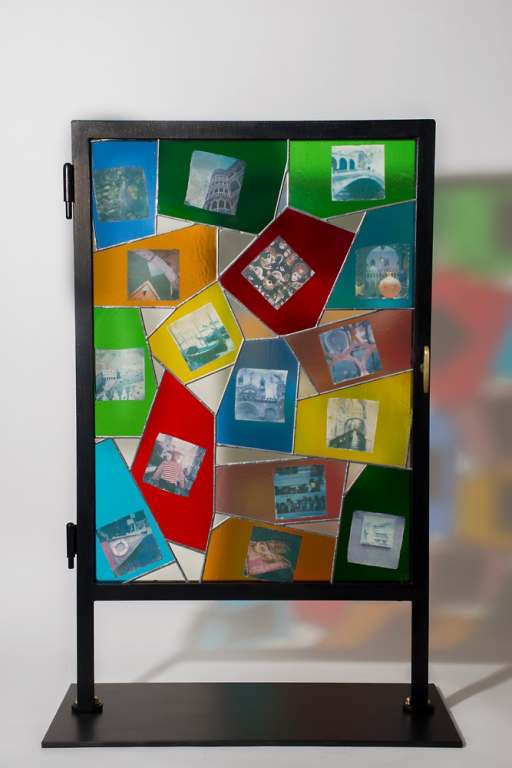 Ogni finestra è un pezzo unico realizzato con immagini Polaroid che attraverso una sua rielaborazione della tecnica “emulsion lift” vengono trasferite su vetro, poi unite e sigillate attraverso la tecnica Tiffany rendendo così l’opera un mosaico di frammenti delle città italiane.