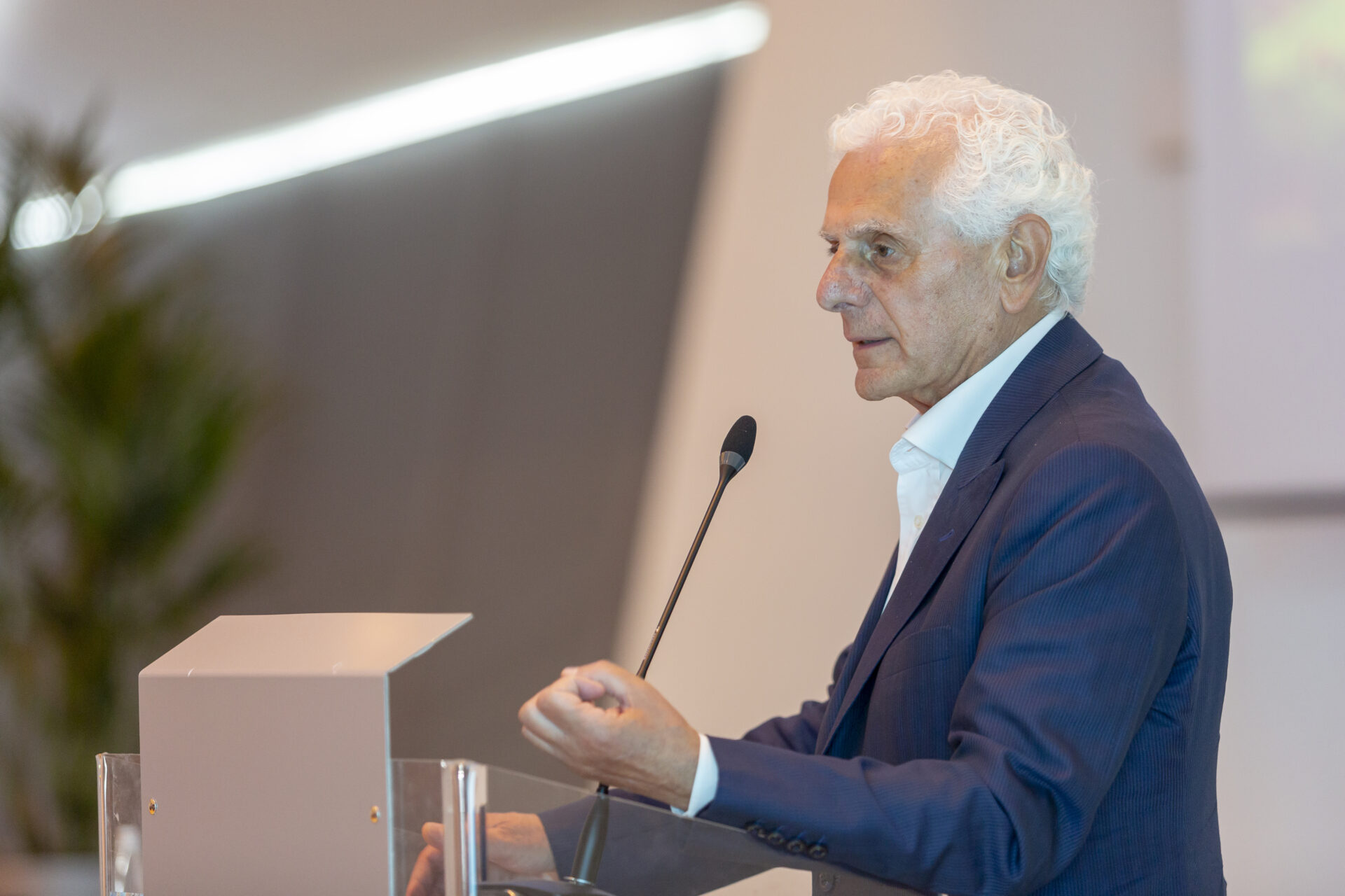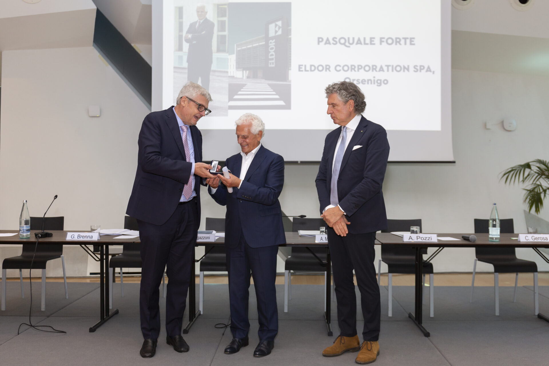 Pasquale Forte è intervenuto sul tema “Coraggio e imprenditorialità”, ripercorrendo la storia di Eldor, l’azienda che ha fondato nel 1972. “50 anni fa il mondo era completamente diverso. Le cose cambiavano ma in modo molto più lento rispetto ad ora. Oggi l’accelerazione è impressionante e bisogna avere una bussola molto particolare per tenere la rotta. Il mondo è uno solo e dobbiamo fare in modo di sostenerlo adottando una nuova sensibilità. C’è un quadro che trovo di particolare ispirazione – ha detto Pasquale Forte mostrando alle sue spalle un grande dipinto – la Testa di tigre dipinta da Antonio Ligabue. Ecco, in questo animale ci rispecchiamo tutti noi qui presenti. Ricordo che anni fa, durante una cena con amici, un giornalista importante mi chiese cosa rappresentasse per me Eldor. Ho risposto di istinto: nel mio garage non c’è un’auto, c’è una tigre che ogni giorno devo cavalcare. Ecco, per me Eldor è questo: guardare con coraggio la tigre e guidarla nella giusta direzione”. Il Presidente di Eldor ha quindi illustrato la sua formula che descrive il successo: “successo= velocità x cambiamento. Il mondo dell’impresa – ha proseguito Forte – è un oceano e dobbiamo solcarlo tenendo la rotta. Dobbiamo credere fortemente in ciò che facciamo. Nel tempo – ha concluso Pasquale Forte – i prodotti Eldor sono cambiati, ma la visione è rimasta la stessa. Ed è grazie a essa se oggi, dopo 50 anni, siamo ancora qui. Crediamo in un mondo migliore, basato su solidi valori e persone integre per lo sviluppo della tecnologia al servizio dell’umanità”.