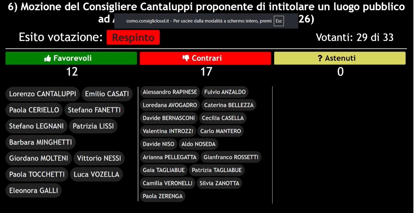 Ma la serata dei voti in libera uscita non era ancora finita. A fine consiglio, infatti, si è discussa la mozione presentata dall’esponente di Fratelli d’Italia Lorenzo Cantaluppi per dedicare un luogo della città ad Alida Valli, gradissima attrice che studiò anche a Como, dove si trasferì all’età di 8 anni e dove trascorse alcuni anni della sua giovinezza, prima di diventare una star internazionale.