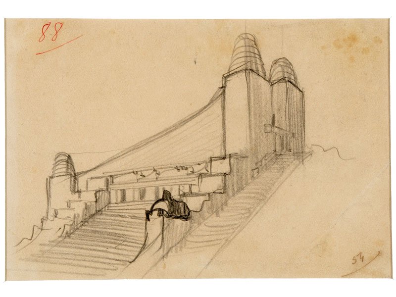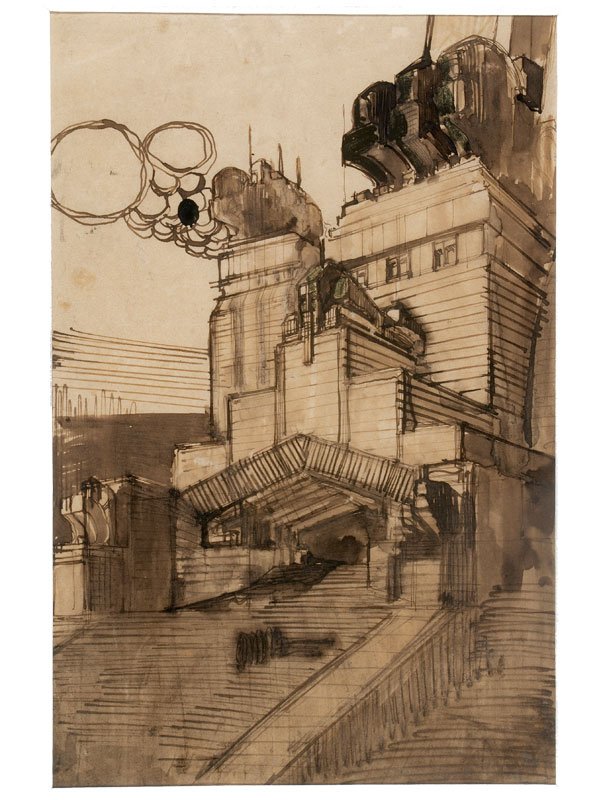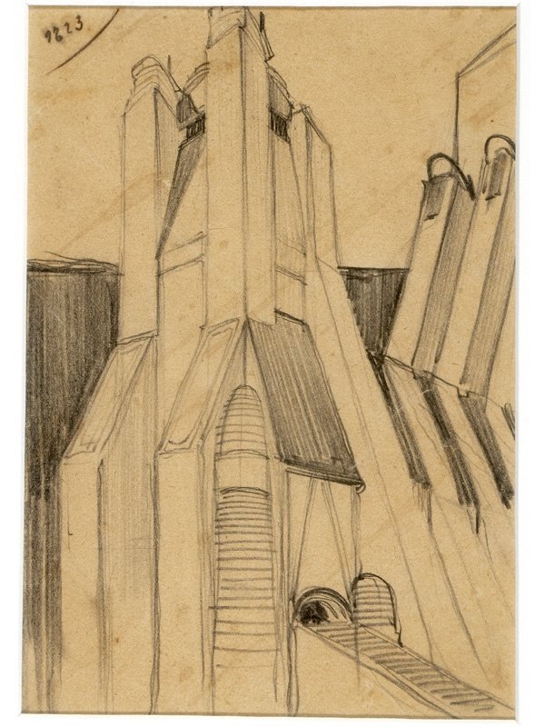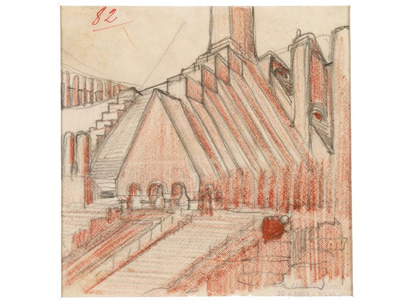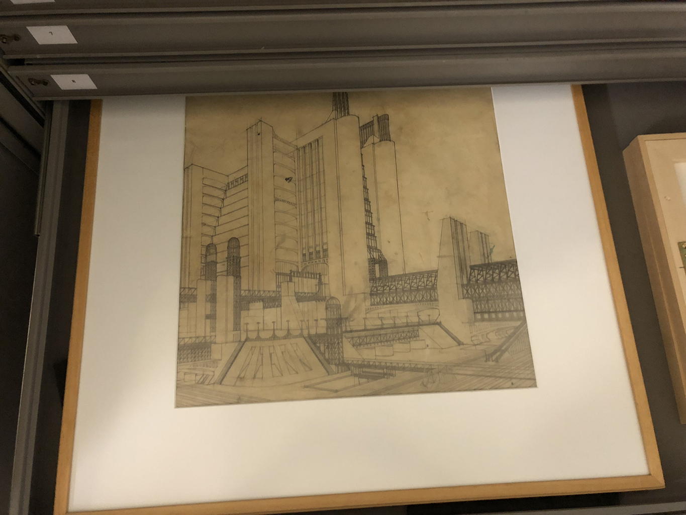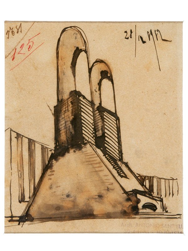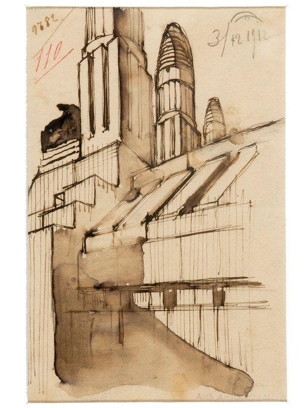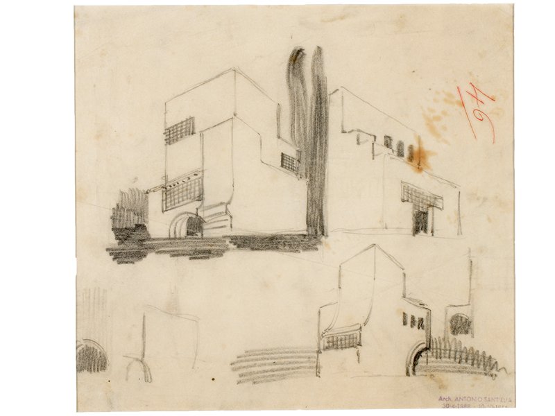 Chiuse in cassetti dentro stanze a temperatura perfetta, appese a pareti mobili, serrate in cubotti e armadi in metallo. Splendide, magnificenti, inestimabili in termini architettonici e artistici. E inesorabilmente, colpevolmente, lontane da quell’habitat naturale che dovrebbe accoglierle: un’esposizione. Centosessanta opere di Antonio Sant’Elia attendono da – troppo – tempo di tornare alla luce.