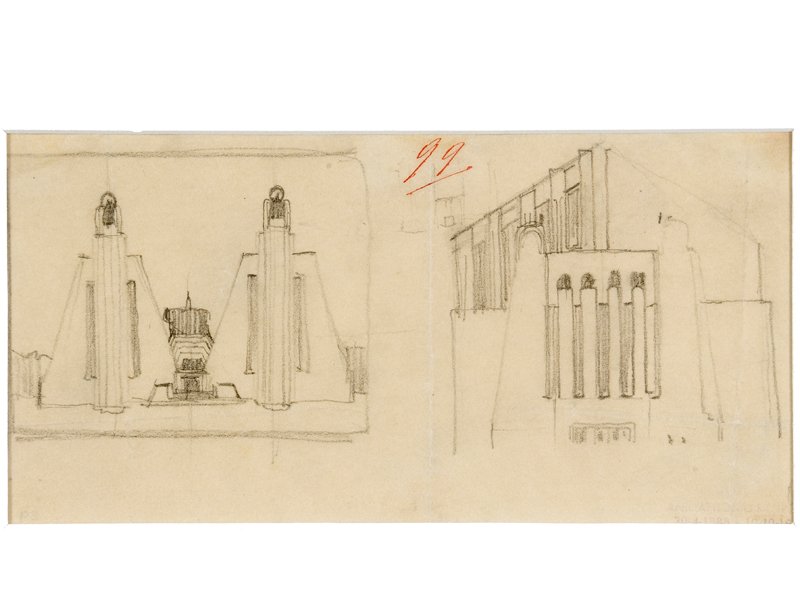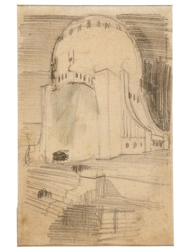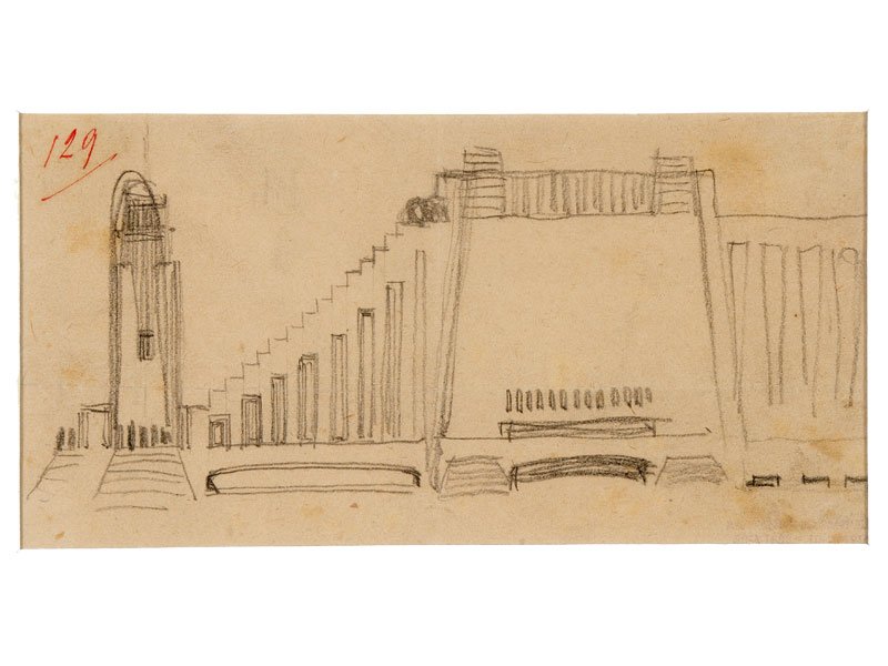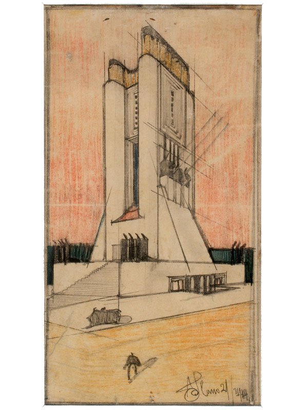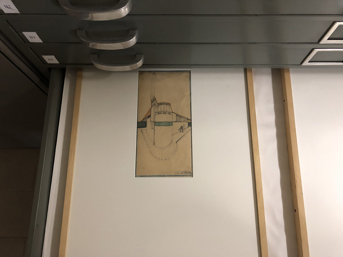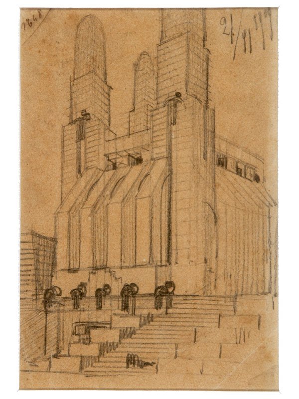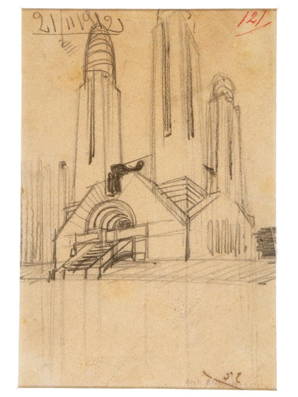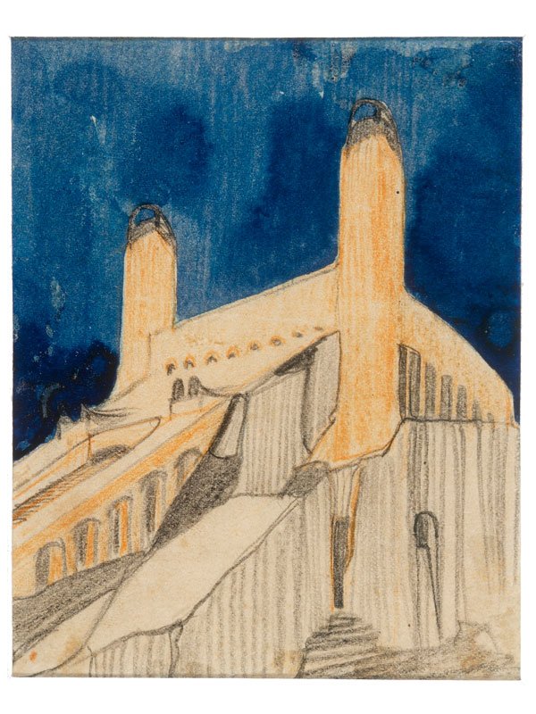 Chiuse in cassetti dentro stanze a temperatura perfetta, appese a pareti mobili, serrate in cubotti e armadi in metallo. Splendide, magnificenti, inestimabili in termini architettonici e artistici. E inesorabilmente, colpevolmente, lontane da quell’habitat naturale che dovrebbe accoglierle: un’esposizione. Centosessanta opere di Antonio Sant’Elia attendono da – troppo – tempo di tornare alla luce.