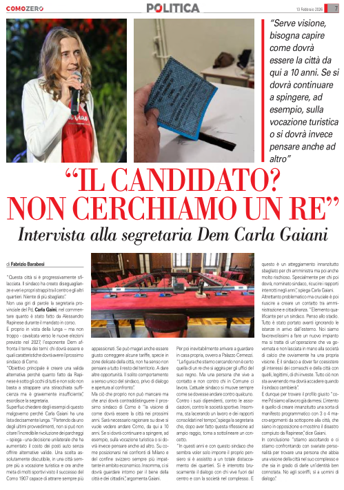 E proprio in vista della lunga – ma non troppo – cavalcata verso le nuove elezioni previste nel 2027, l’esponente Dem affronta il tema dei temi: chi dovrà essere e quali caratteristiche dovrà avere il prossimo sindaco di Como.
