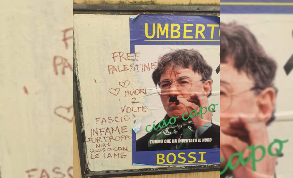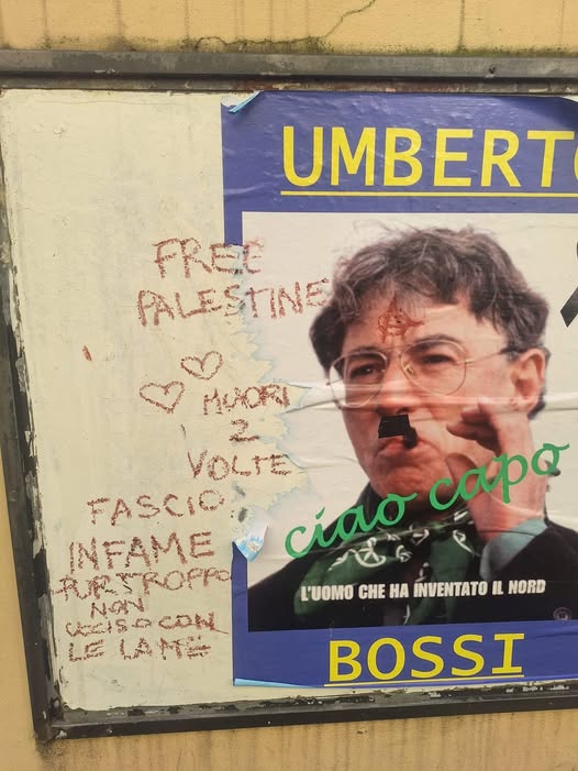 “Guardate come hanno conciato la bacheca della nostra Sezione della Lega di Cantù: ecco la democrazia e la Pace di chi inneggia alla Palestina Libera. Vergogna. Sabato 18 aprile alle 15 tutti in piazza Duomo a Milano anche contro questo schifo”.