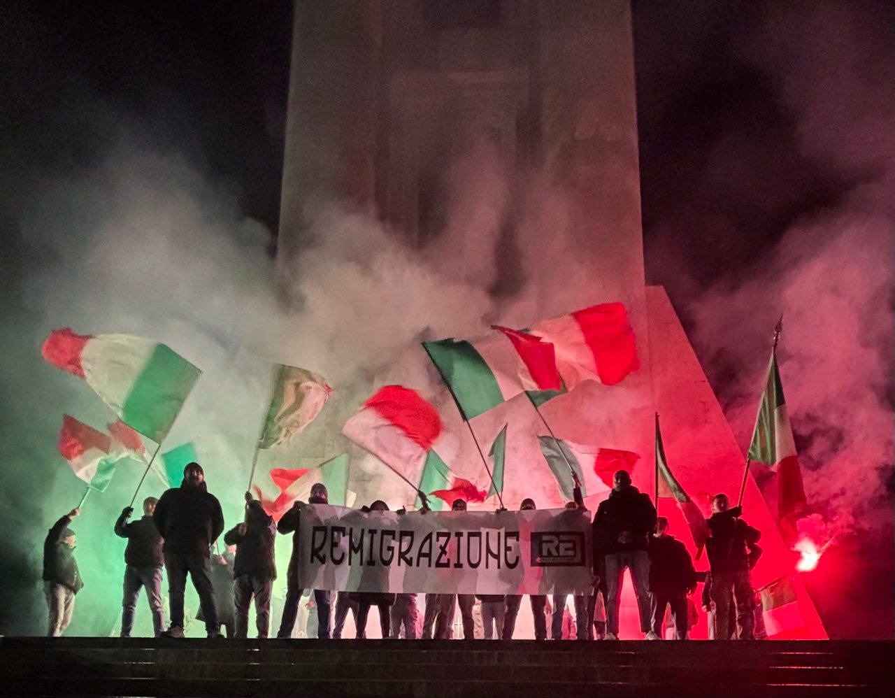 Azione dell’estrema destra nella notte a Como. Fumogeni e striscioni inneggianti alla cosiddetta Remigrazione – il ritorno forzato degli stranieri nei paesi d’origine – sono stati portati davanti al Monumento ai Caduti da alcuni esponenti di quello che si autodefinisce “comitato promotore della proposta di legge”.
