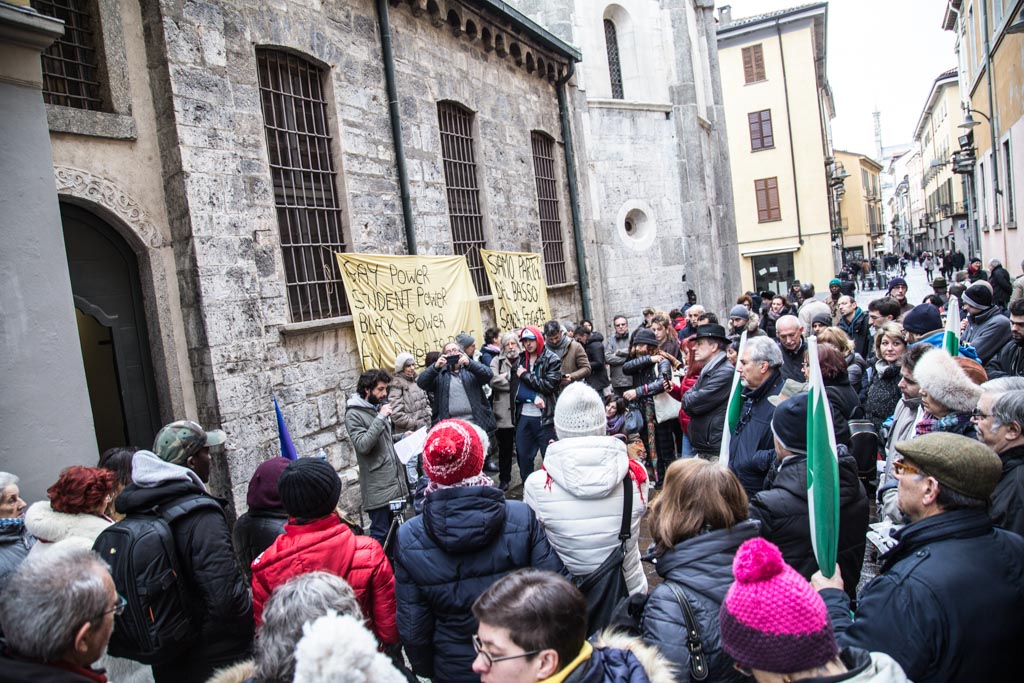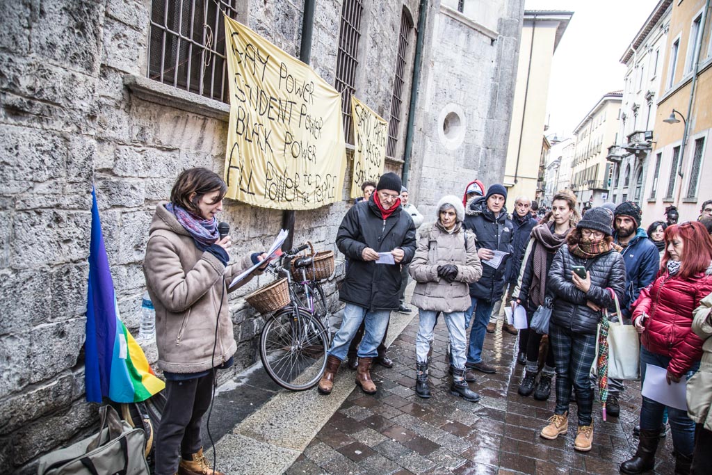 Gianpaolo Rosso, presidente dell’Arci di Como, tra gli altri che hanno preso la parola, ha ricordato l’importanza delle resistenza. “L’iniziativa politica riguarda tutti, tutti i giorni. Tutto è politica e non possiamo pensare che fare politica non costi nulla – ha detto Rosso – è per questo che oggi siamo qui davanti al palazzo di un’amministrazione che ha deciso di perseguire i poveri e non la povertà e di lottare contro i migranti e non per l’integrazione”.