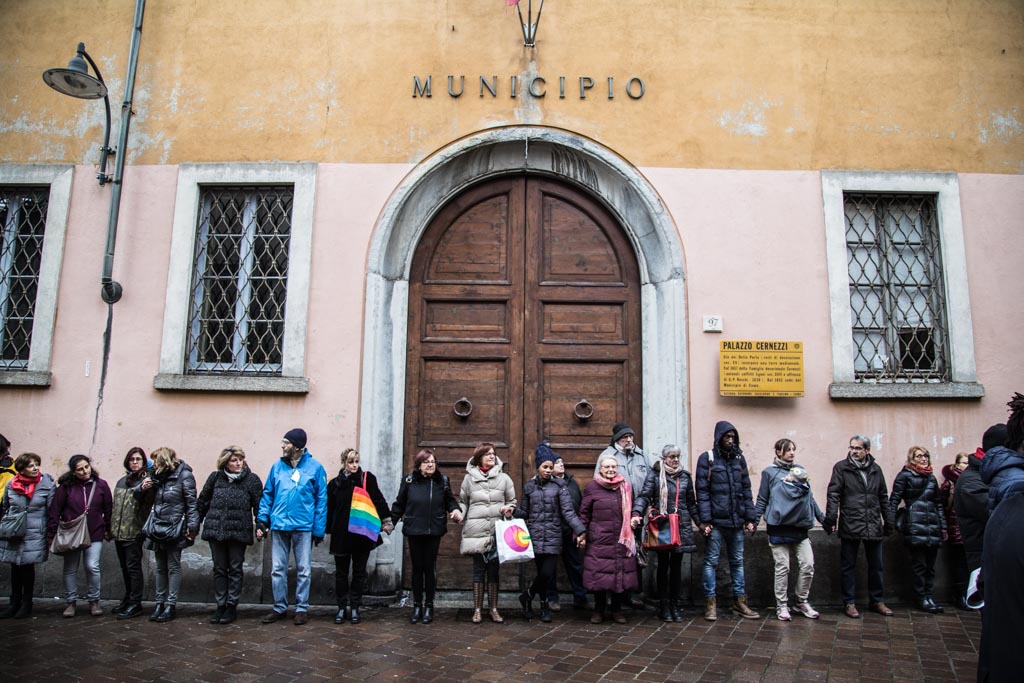 Oggi, a Como, una catena umana composta da un centinaio di persone ha cinto Palazzo Cernezzi per chiedere uguaglianza di diritti per ogni sesso, razza o religione.