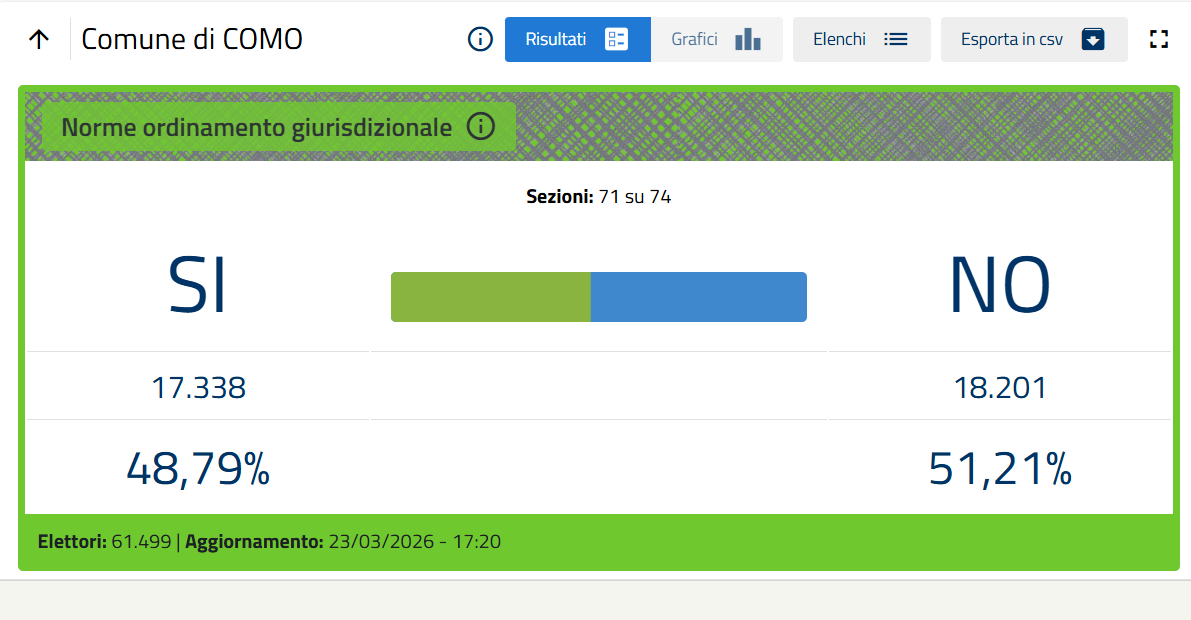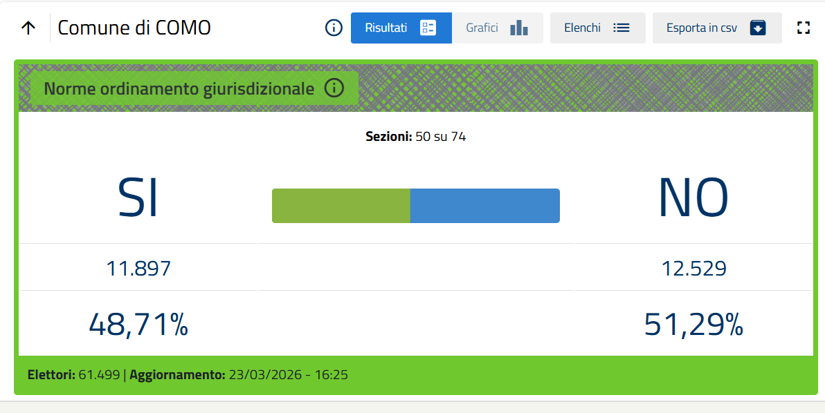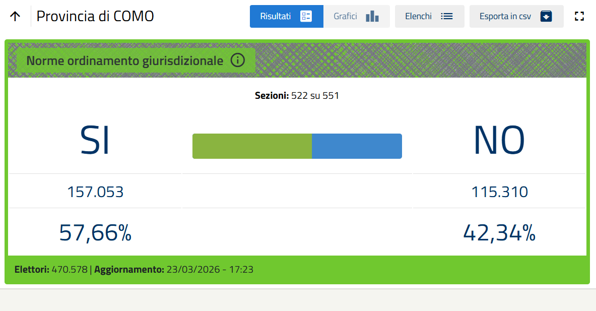 In provincia di Como, a scrutinio ancora in corso, si afferma la vittoria del sì (in controtendenza agli ultimi dati disponibili sul fronte italiano) per quanto riguarda il referendum sulla giustizia.