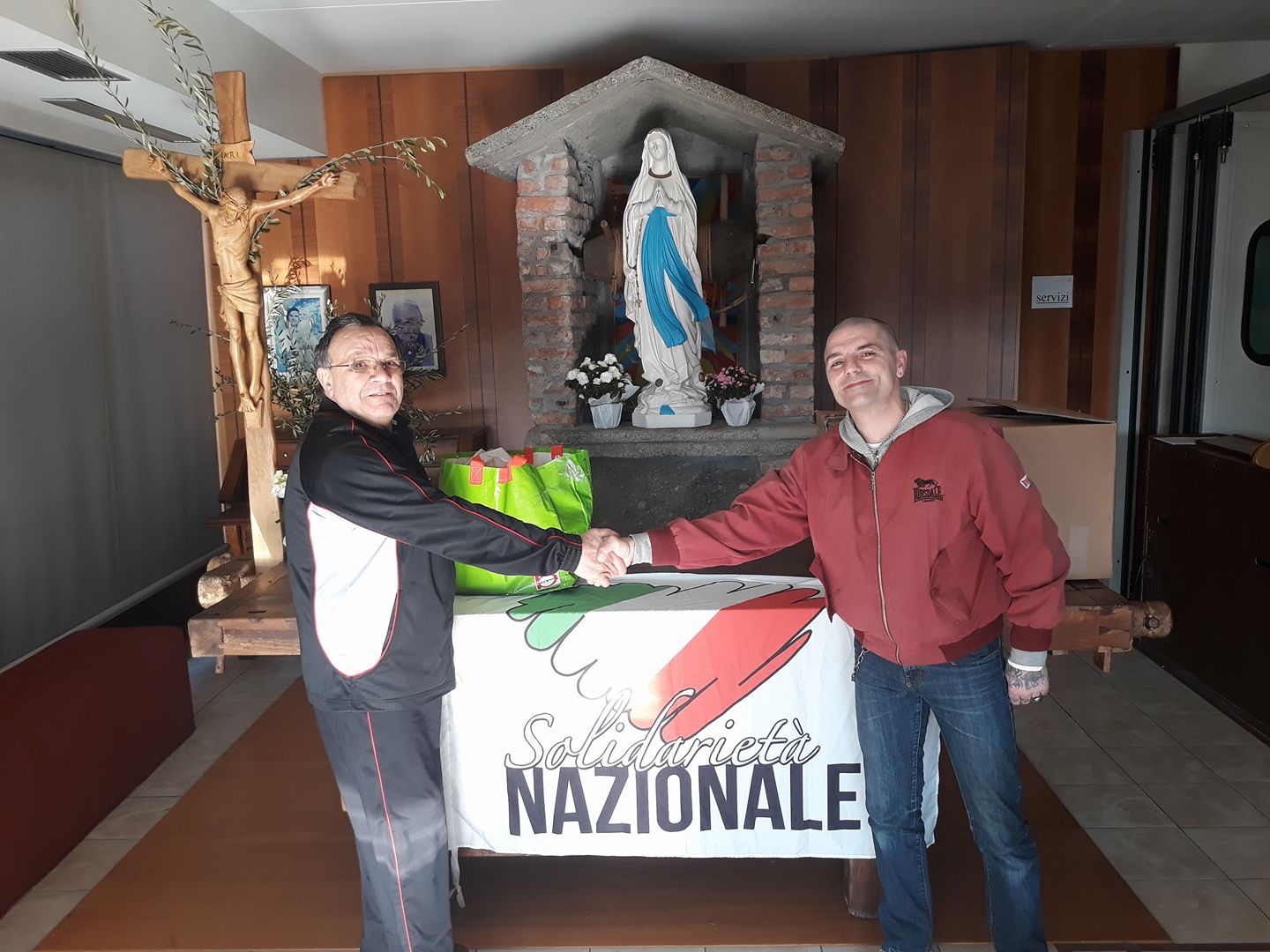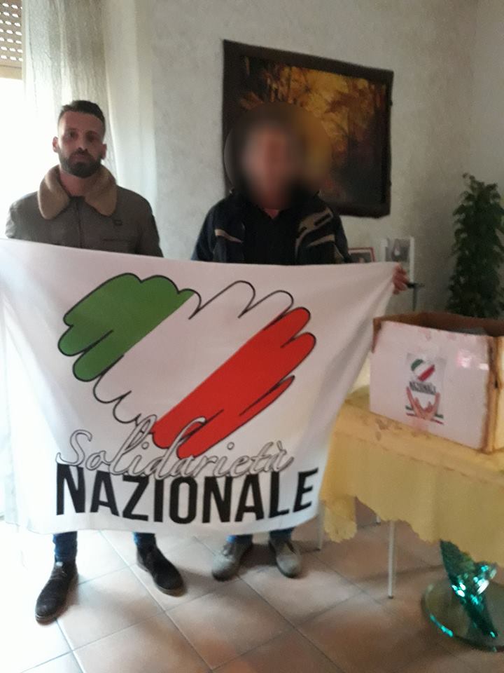 In attesa del “patronato nero” (“Apriamo a Cantù a maggio, abbiamo la sede”), la solidarietà anni ’30 – l’epoca in cui venne inventata dal Regime la “Befana fascista”, ora declinata da Forza Nuova nella “Befana Tricolore” – si articola sui pacchi viveri, tramite una onlus chiamata “Solidarietà Nazionale” e l’immancabile logo verdebiancorosso sul vessillo bianco.