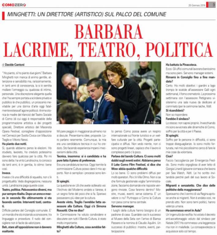 Anima storica (e madre del rilancio) del Teatro Sociale di Como (di cui oggi è responsabile della programmazione artistica e dei progetti speciali), Direttore artistico del Macerata Opera Festival, consigliere d’opposizione nel Cernezzi per Svolta Civica con Maurizio Traglio e Vittorio Nessi.