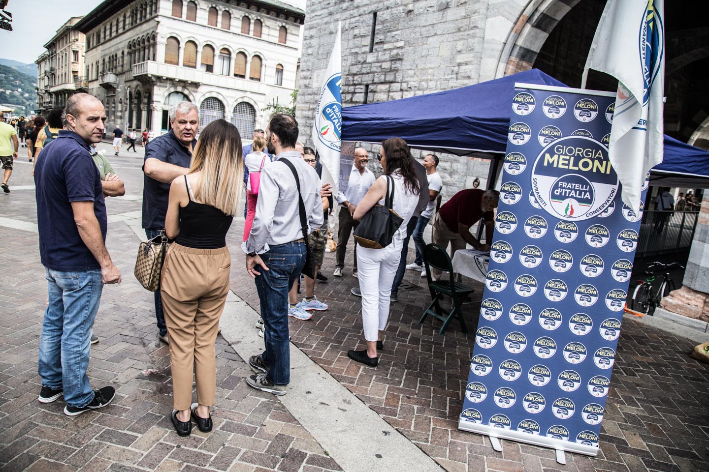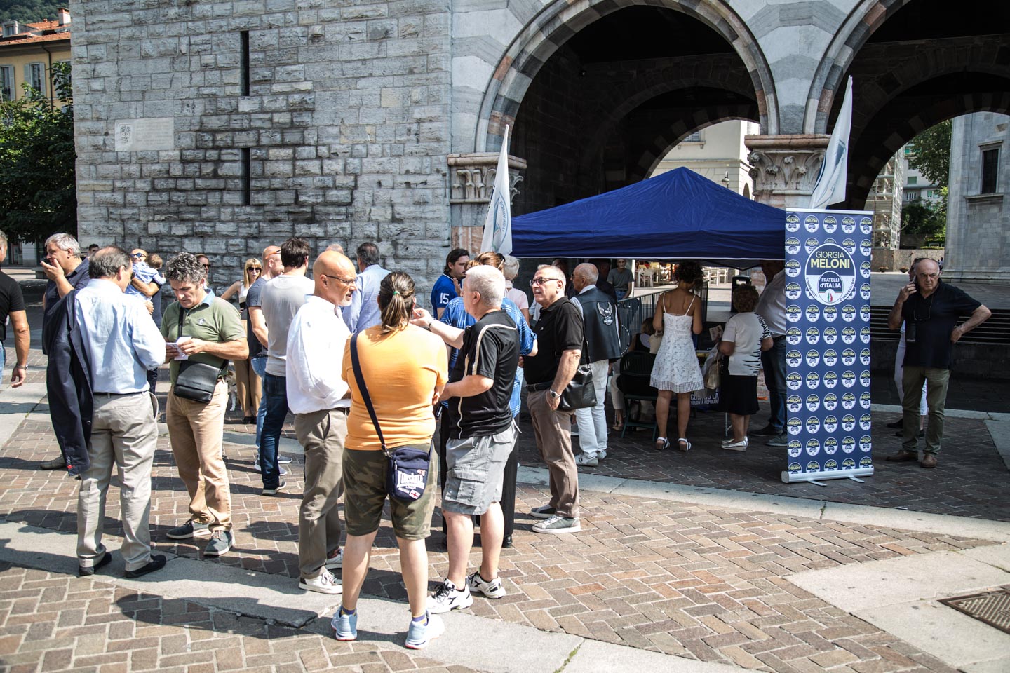 Sull’onda di questa previsione e sulle voci che si stanno inseguendo in questi giorni su possibili nuove coalizioni PD-M5S o su (improbabili, secondo Butti) rattoppi allo strappo tra Lega e alleati pentastellati, la sezione comasca di Fratelli d’Italia ha allestito, questa mattina, un gazebo in piazza Duomo con l’obiettivo di raccogliere firme per chiedere elezioni immediate, in autunno.