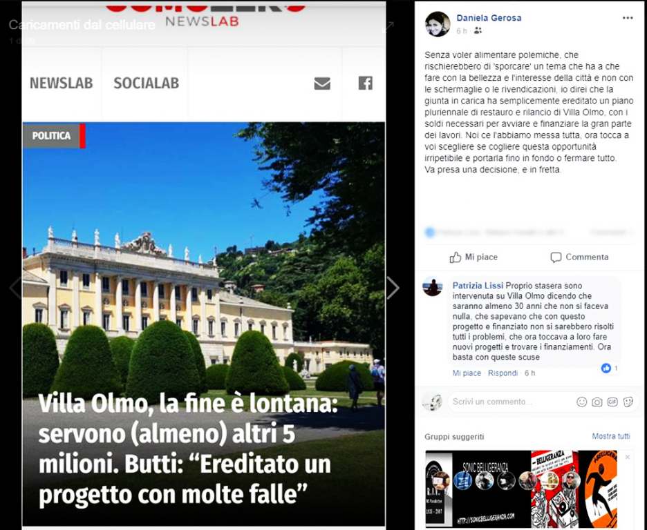 E stavolta ci sta. Fra i progetti portati avanti nei cinque anni nel Cernezzi, l’ex assessore ai Lavori Pubblici Daniela Gerosa su villa Olmo, nel bene o nel male, ci ha messo pesantemente anima, faccia e impegno.