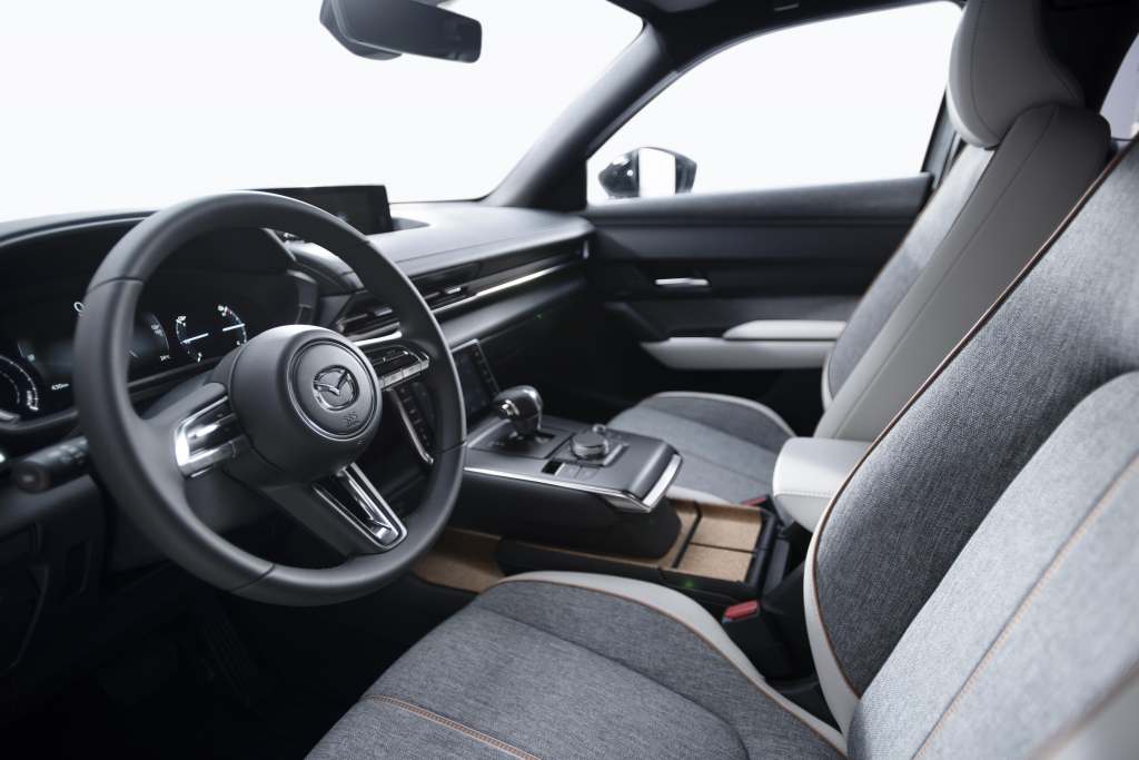 Gli interni dell’abitacolo poi, costruiti con materiali quali sughero ed ecopelle, sono il tocco d’eleganza finale che completa l’offerta totalmente ecologica di Mazda MX-30.
