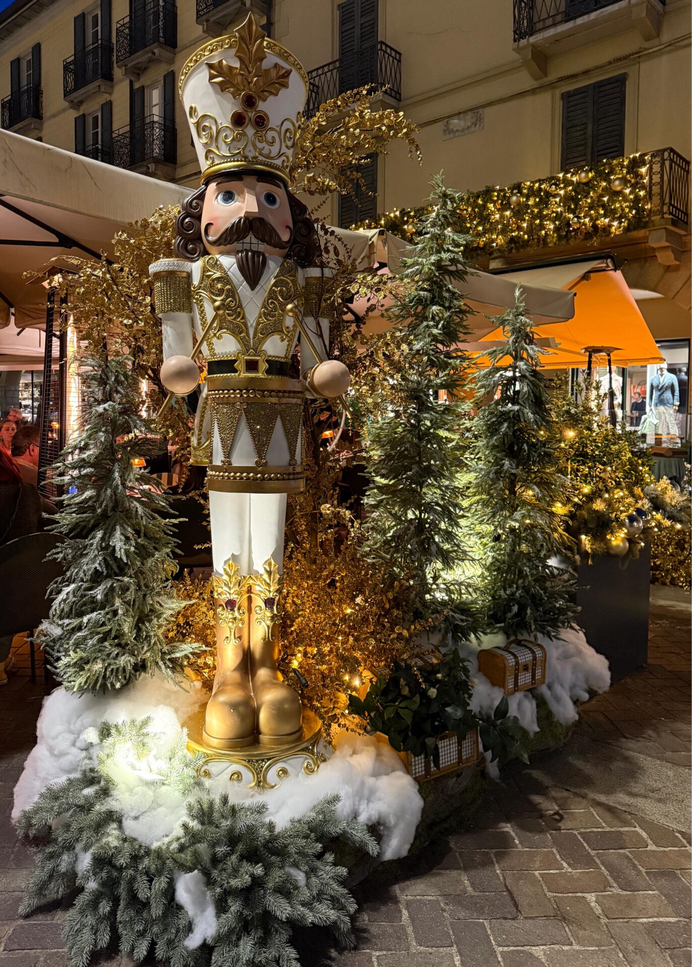 Gli allestimenti, ricchi e curati nei minimi dettagli, creano un vero e proprio filo conduttore armonioso: gli Schiaccianoci – imponenti e sontuosi – accolgono gli ospiti in scenari fiabeschi tra boschi innevati, candy cane giganti, grandi campanelle dorate e cassetta delle lettere per Babbo Natale. Una vera e propria atmosfera incantata che accompagna chi passeggia per le vie del centro.