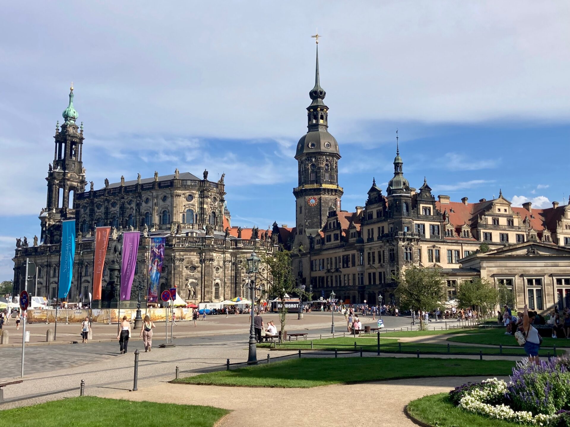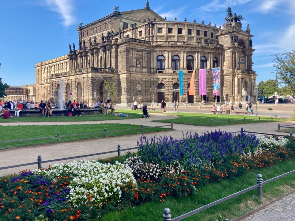 Ad esempio, nel parco del Semperoper Theaterplatz di Dresda – Land tedesco della Sassonia- un semplice profilo metallico indica il divieto, mentre accanto alla fontana è visibile la possibilità limitrofa di sdraiarsi liberamente sull’erba.