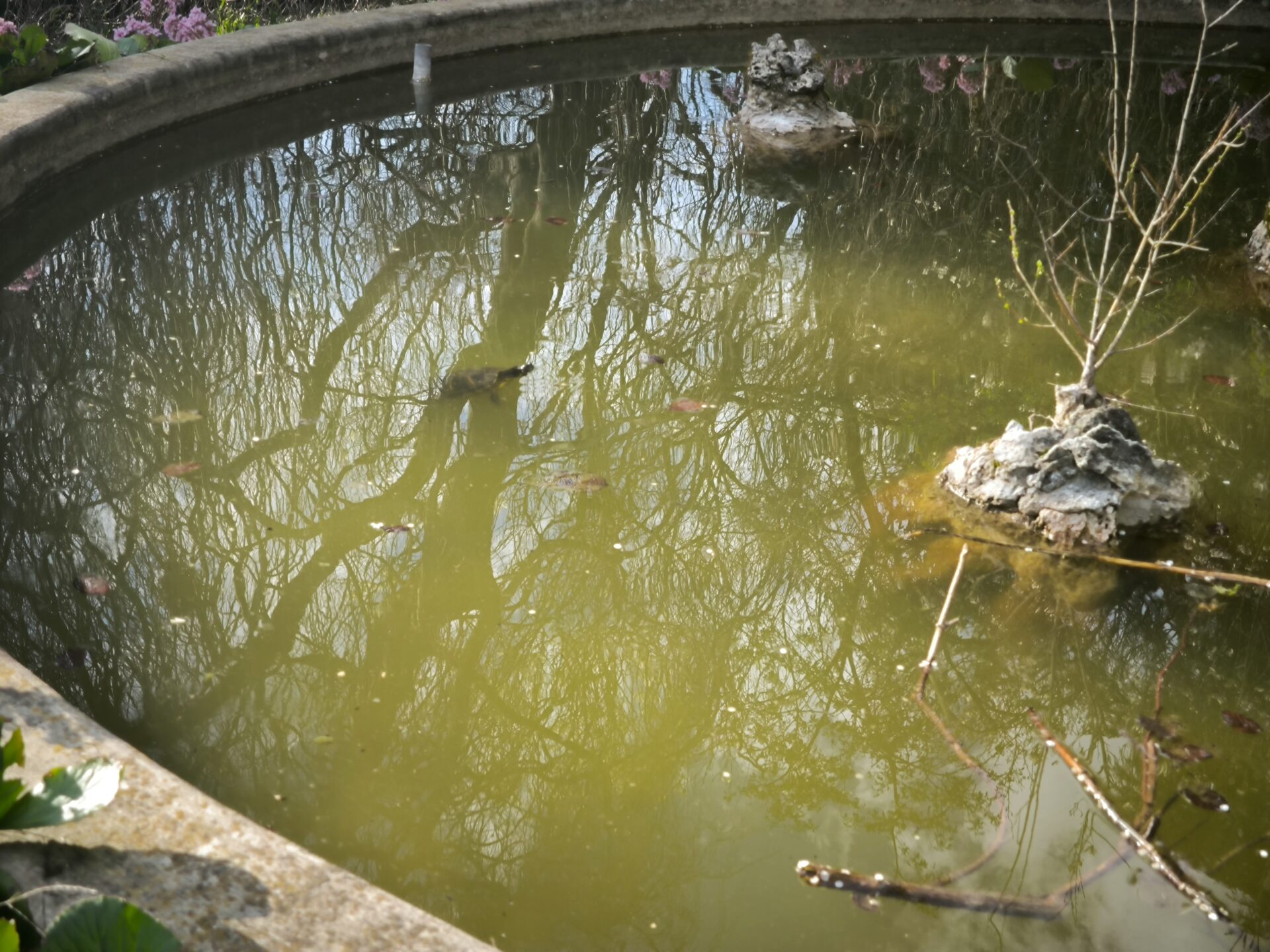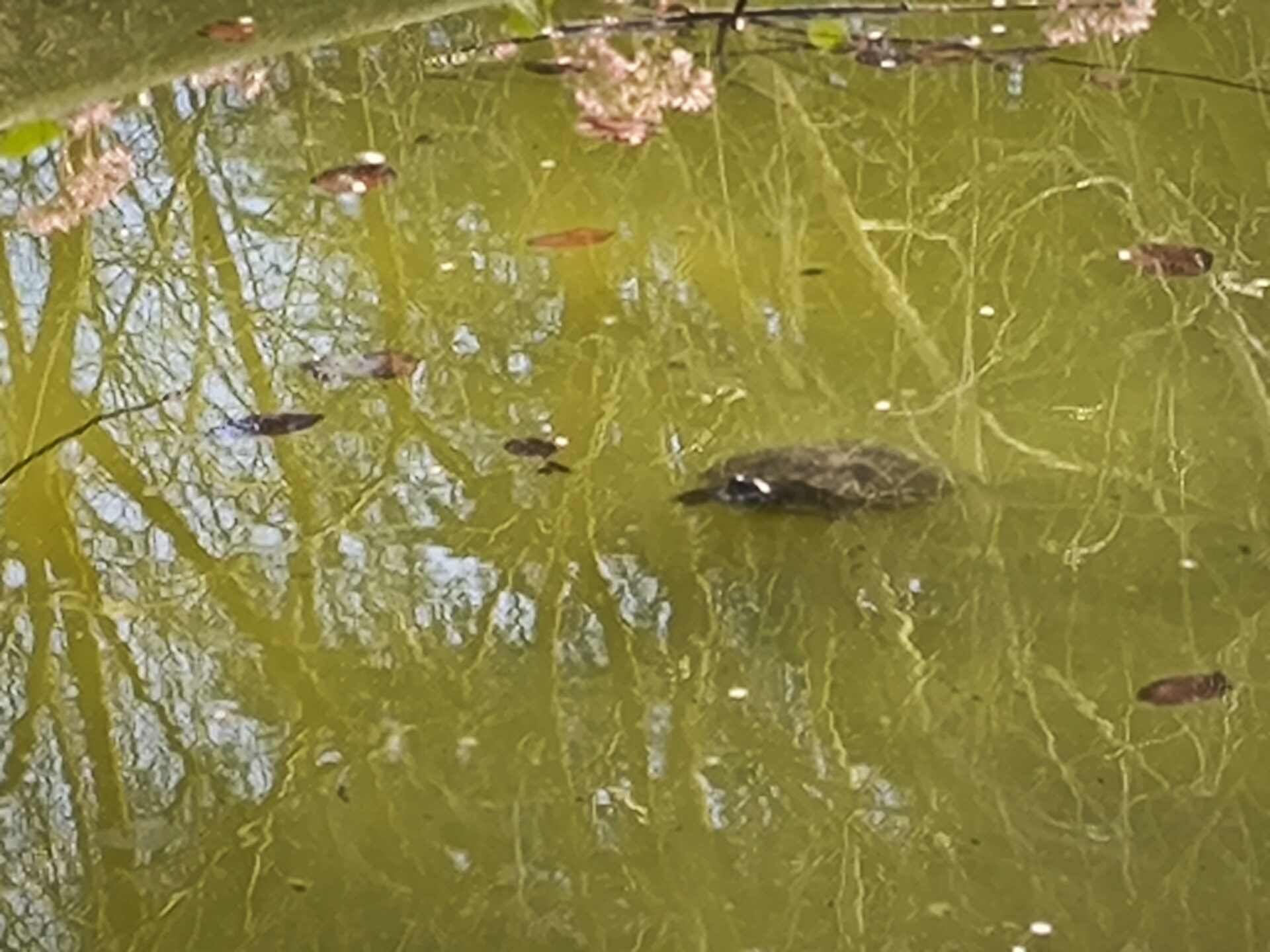E di più, in un’acqua certo non limpida, se la sguazzano con flemma grande e felicità lussuriosa le tartarughe, ne conti almeno due. Ma sono timide, le ragazze. Se ti avvicini si immergono e le foto sono così-così.