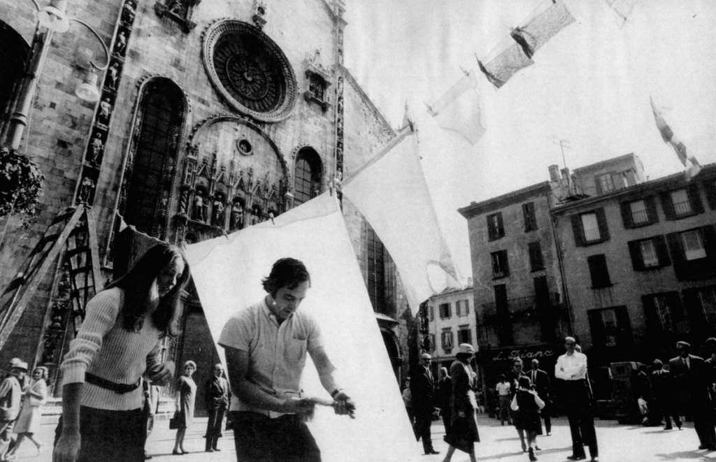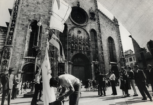 1 – Panni d’autore stesi in Piazza Duomo: stupore e critiche. Poi fanno una brutta fine (artistica?)