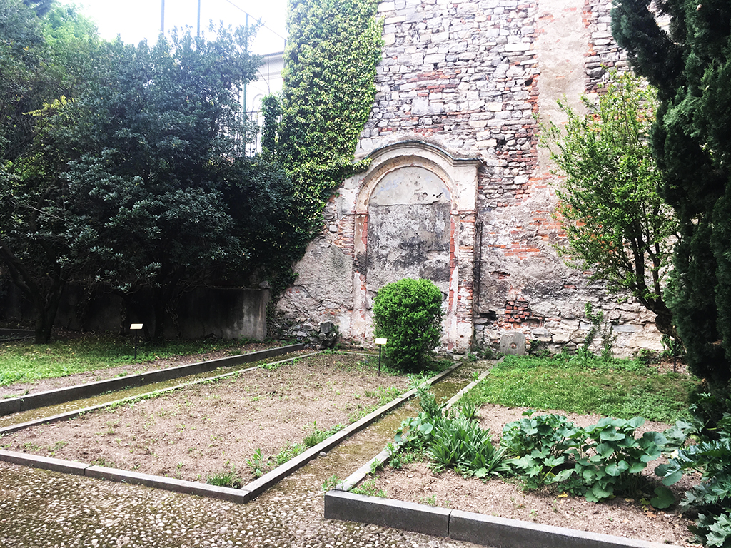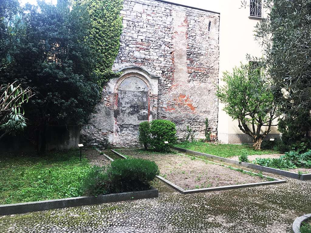 E allora ha ripensato a quel termine, “via botanica”, e gli è venuto in mente che in un angolo del suo palazzo, chiuso dietro un pesante cancello, c’è un gioiellino nascosto che pochi conoscono: è un orto, ma non un orto qualsiasi. E’ un orto romano in cui vengono coltivate piante e erbe aromatiche citate da Plinio il Vecchio nella Naturalis Historia e da altri scrittori latini o i cui resti sono stati ritrovati durante gli scavi archeologici sul territorio comasco.