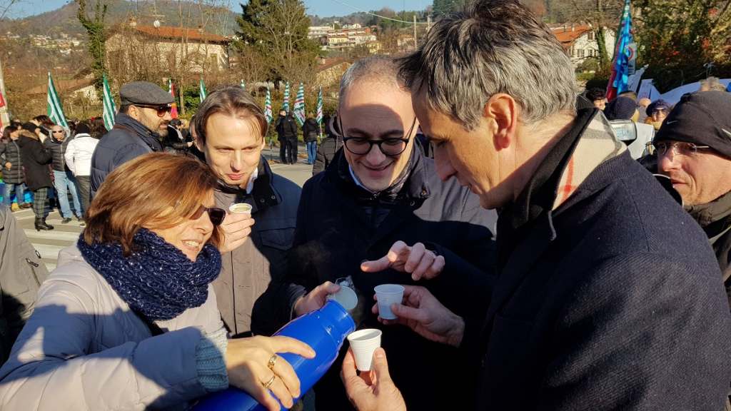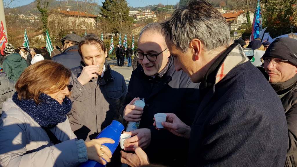 Un momento di condivisione leggero, nulla di più, ma che pure nella sua “banalità” – sembra incredibile sottolinearlo ma è così – certi toni del dibattito pubblico avrebbero persino potuto vendere stupidamente come chissà quale prostrazione alla casta sogghignante. Non è accaduto, non era così: nella Como del 2018, davanti ai cancelli di una storica azienda in forte crisi, un piccolo gesto di condivisione è rimasto tale. E’ rimasto quello che era: folle sottolinearlo, forse, ma nulla è più scontato nell’Italia del rancore.