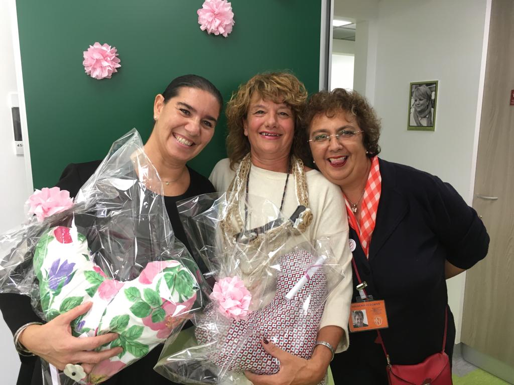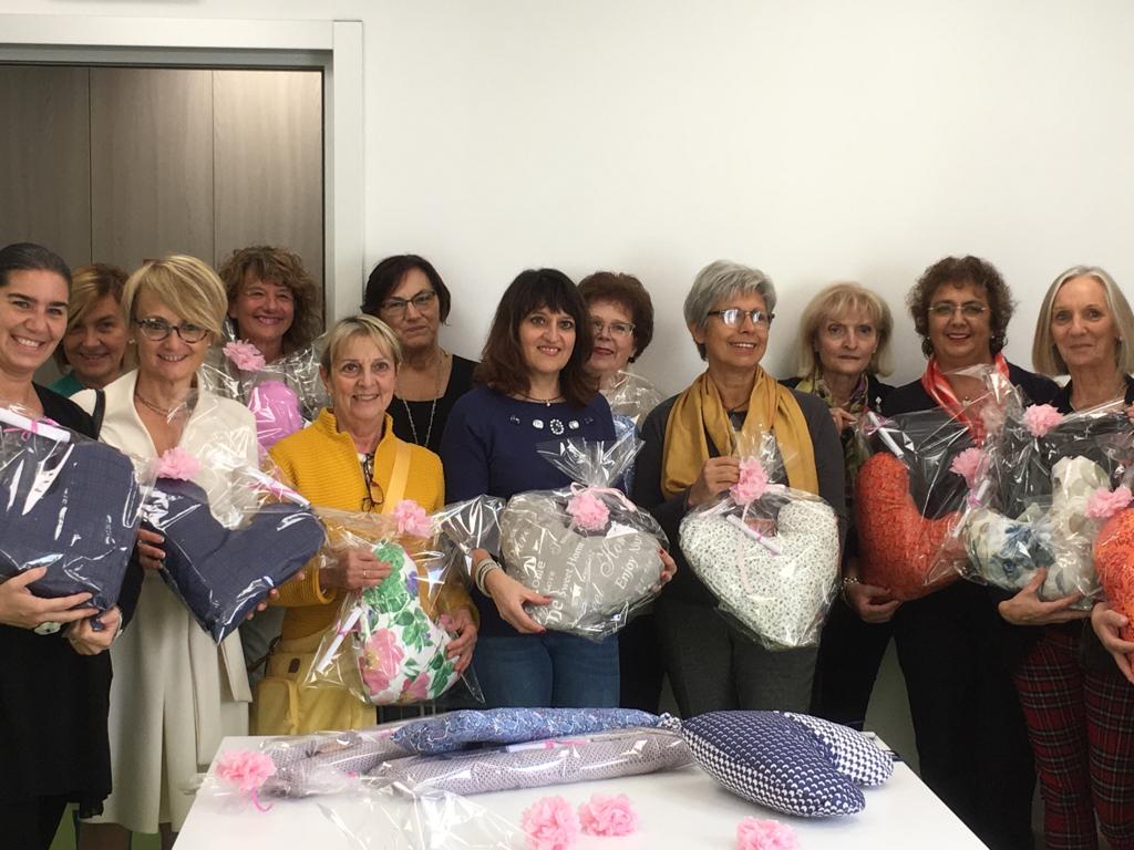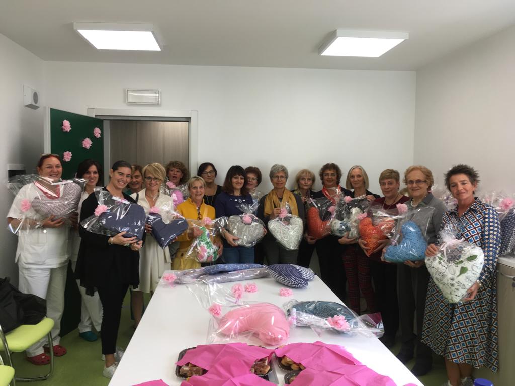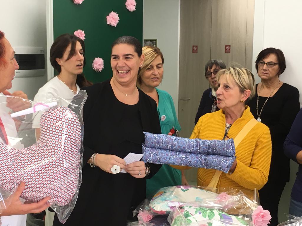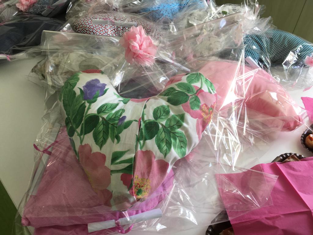 Già, perché questo cuscino, che verrà donato dall’associazione alle pazienti del reparto, non è solo un bellissimo gesto simbolico ma ha anche un’utilità pratica perché, grazie alla sua forma, è in grado di dare sollievo durante il riposo a chi ha subito lo svuotamento del cavo ascellare, pratica spesso necessaria per la rimozione completa del tumore.