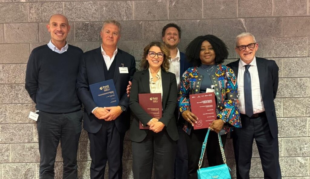[Nella foto da sinistra, Maurizio Morlotti direttore socio sanitario di Asst Lariana, Giuseppe Nicola Iadanza, Juliana Koxhaj, Davide Gilardoni, Laurette Pascaline Fopa e Dario Sinapi il giorno della consegna del diploma a Milano]