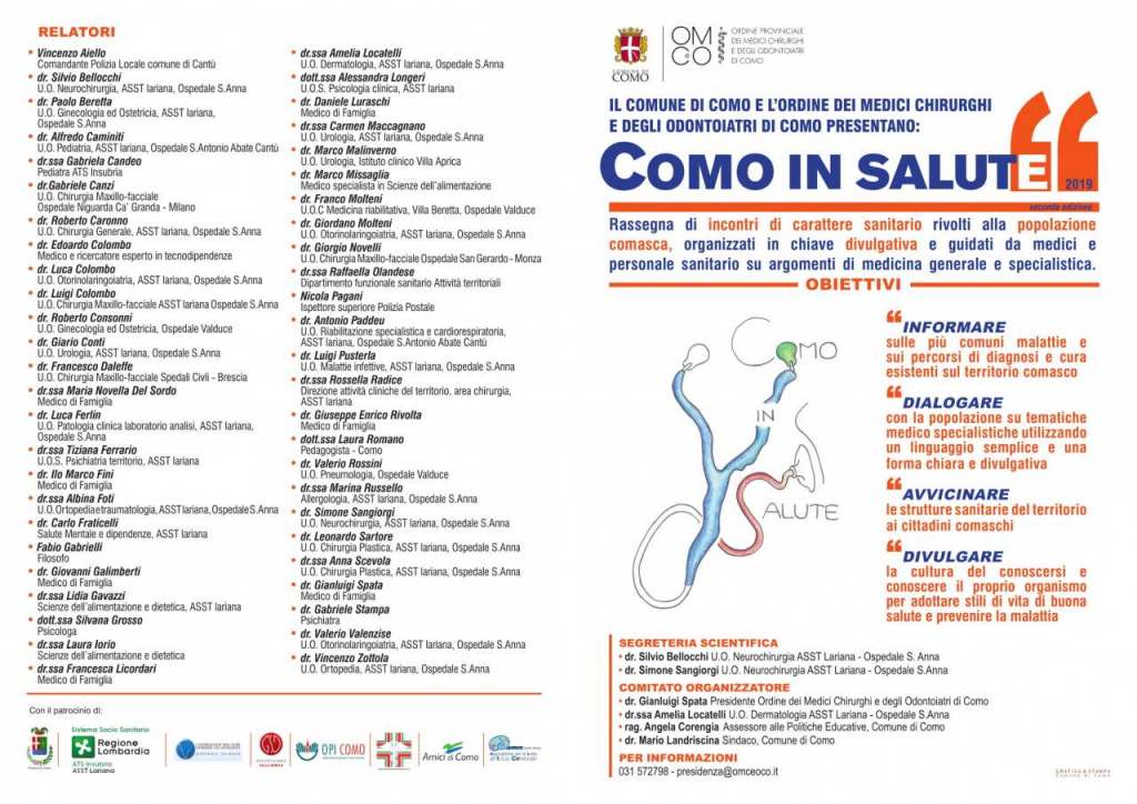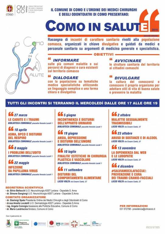 Dopo il successo della prima edizione, torna Como in salute: una rassegna di incontri di informazione sanitaria aperti al pubblico e organizzati dall’ Ordine dei Medici Chirurghi e Odontoiatri di Como e dal Comune di Como, per parlare di benessere, stili di vita e problematiche relative alla salute.