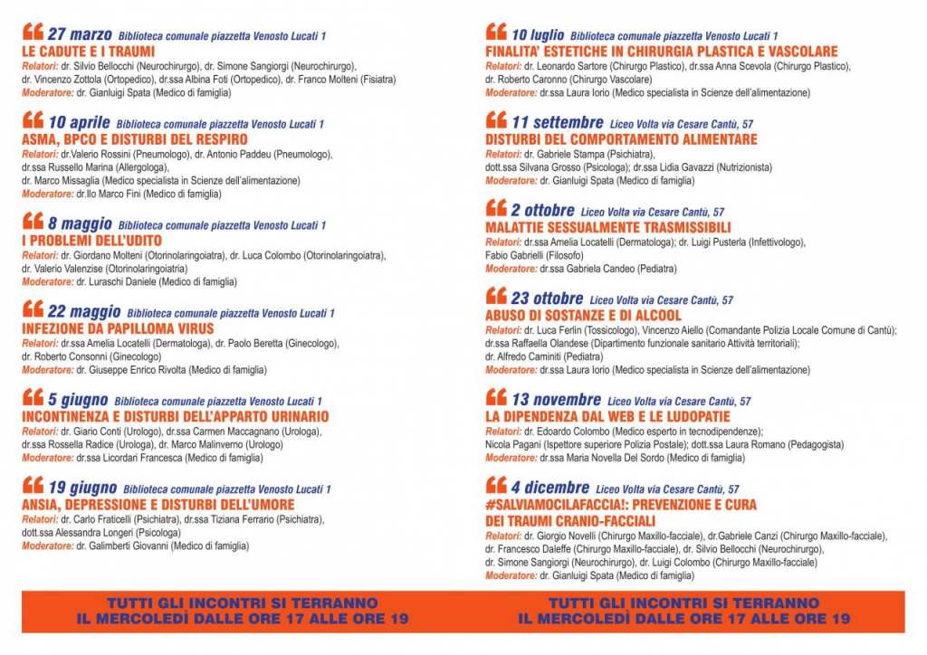 Di seguito il calendario degli incontri di Como in salute 2019: