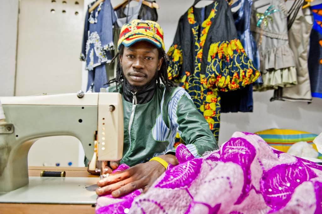 “In Gambia– racconta Chieikh – molti uomini scelgono la professione di sarto. Ho imparato tutto da mio zio: da piccolo passavo ore ad osservarlo in mezzo alle stoffe, perso tra ago e filo. Ne rimasi affascinato e decisi che quella sarebbe stata la mia professione”.