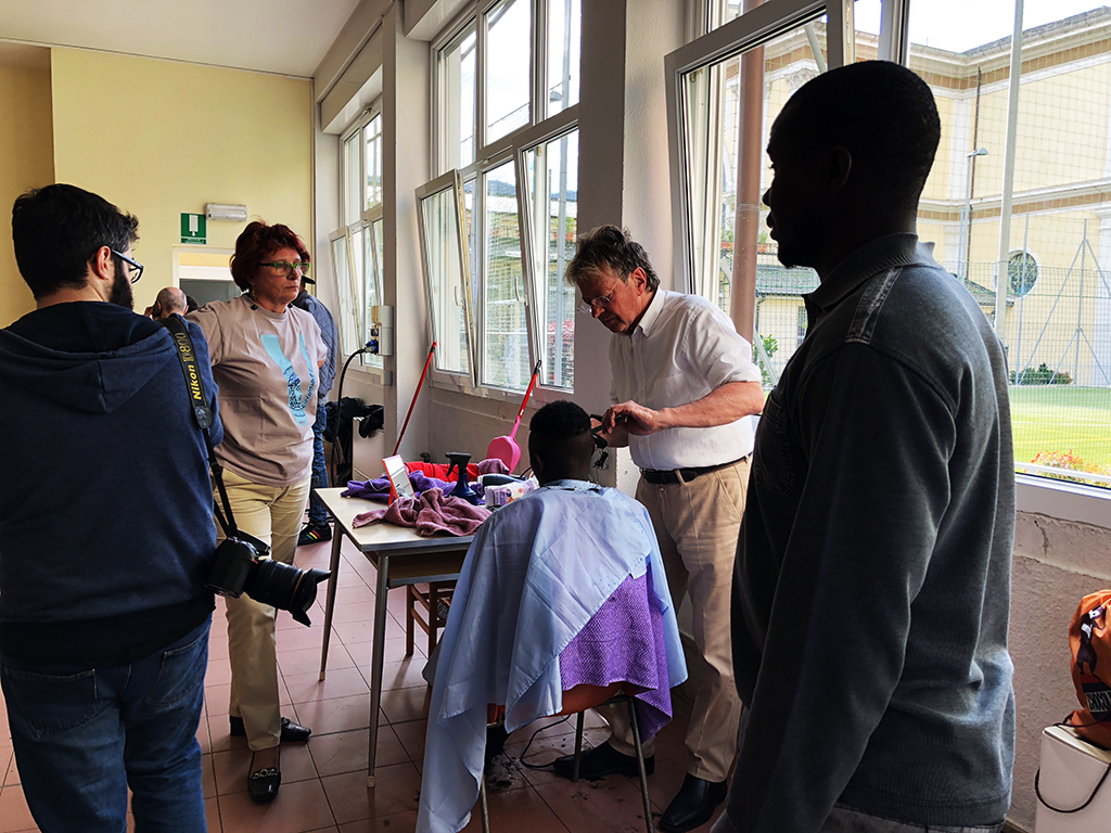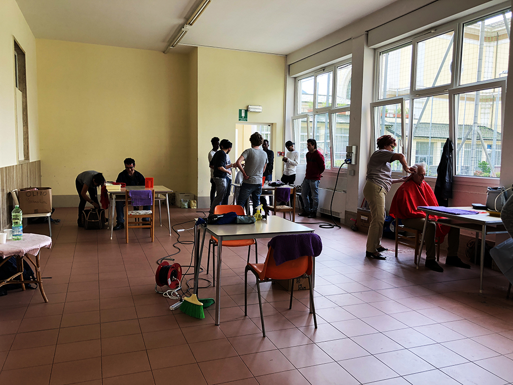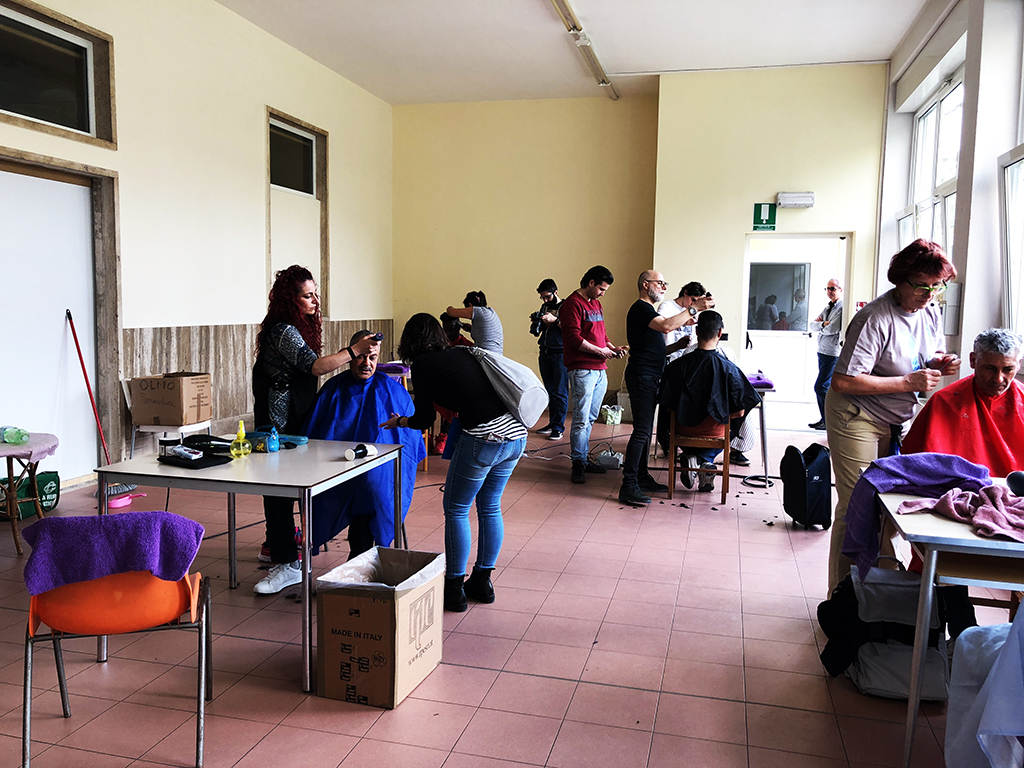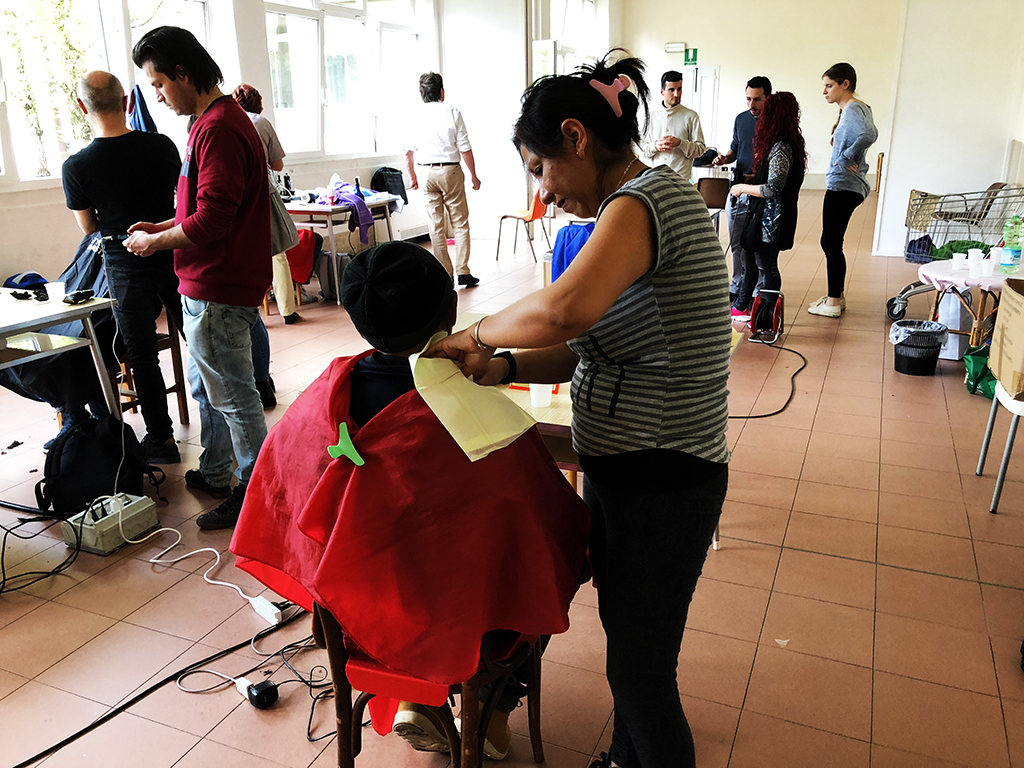 Insomma, è uno spaccato di realtà, uno sguardo forte su quella quotidianità che spesso si ritiene distante ma che in realtà affolla le strade. I parrucchieri collaborano tutti a titolo gratuito e provengono da Como o dalla provincia, come Simone, un ragazzo di 22 anni monzese che sceglie spontaneamente, per un lunedì al mese, di impegnarsi coi colleghi qui presenti. “Ho visto il progetto su Facebook e ho deciso di aderire immediatemente perchè volevo dare una mano e nel farlo mi diverto molto”.